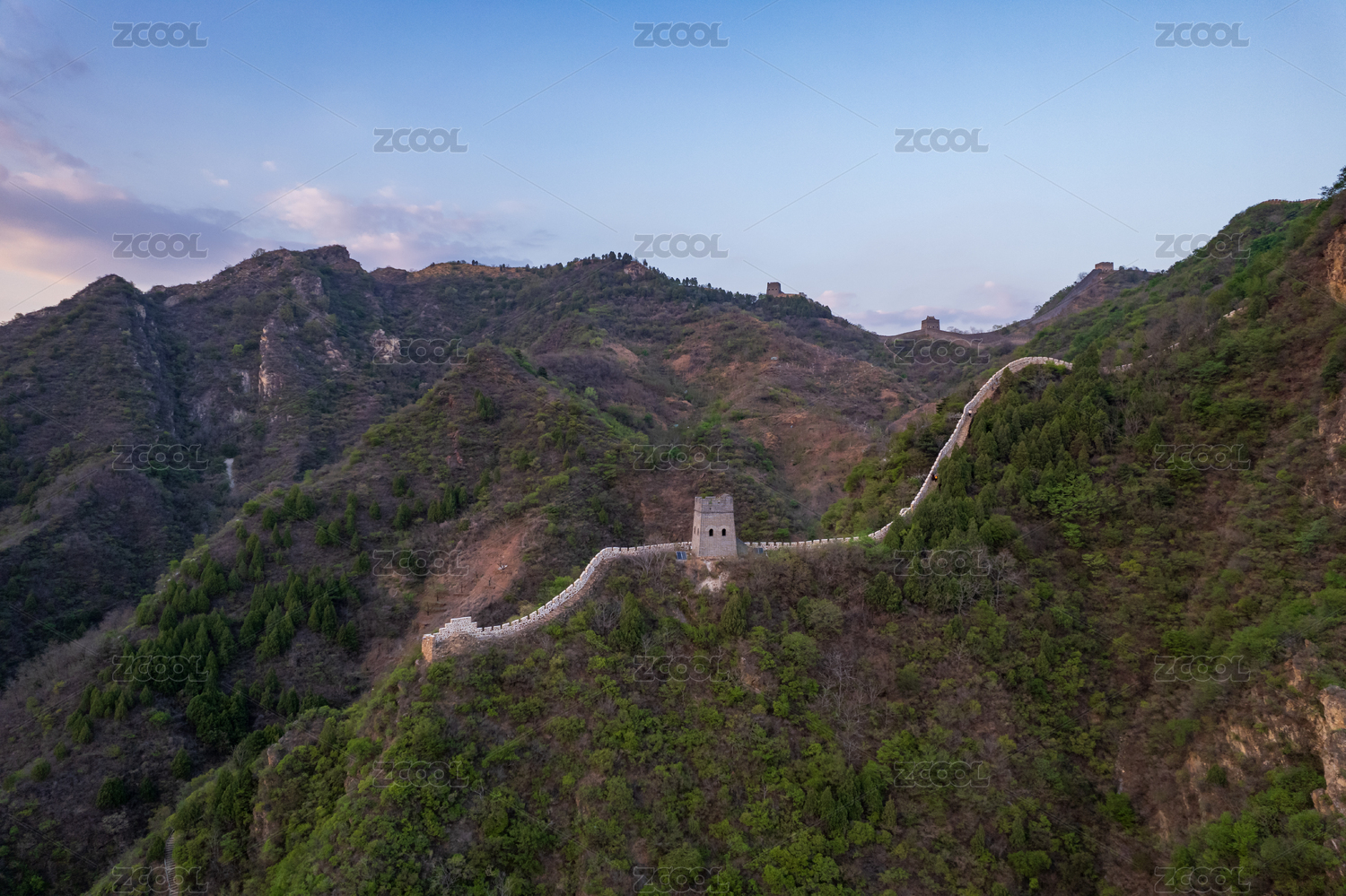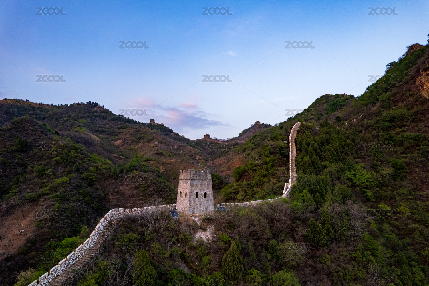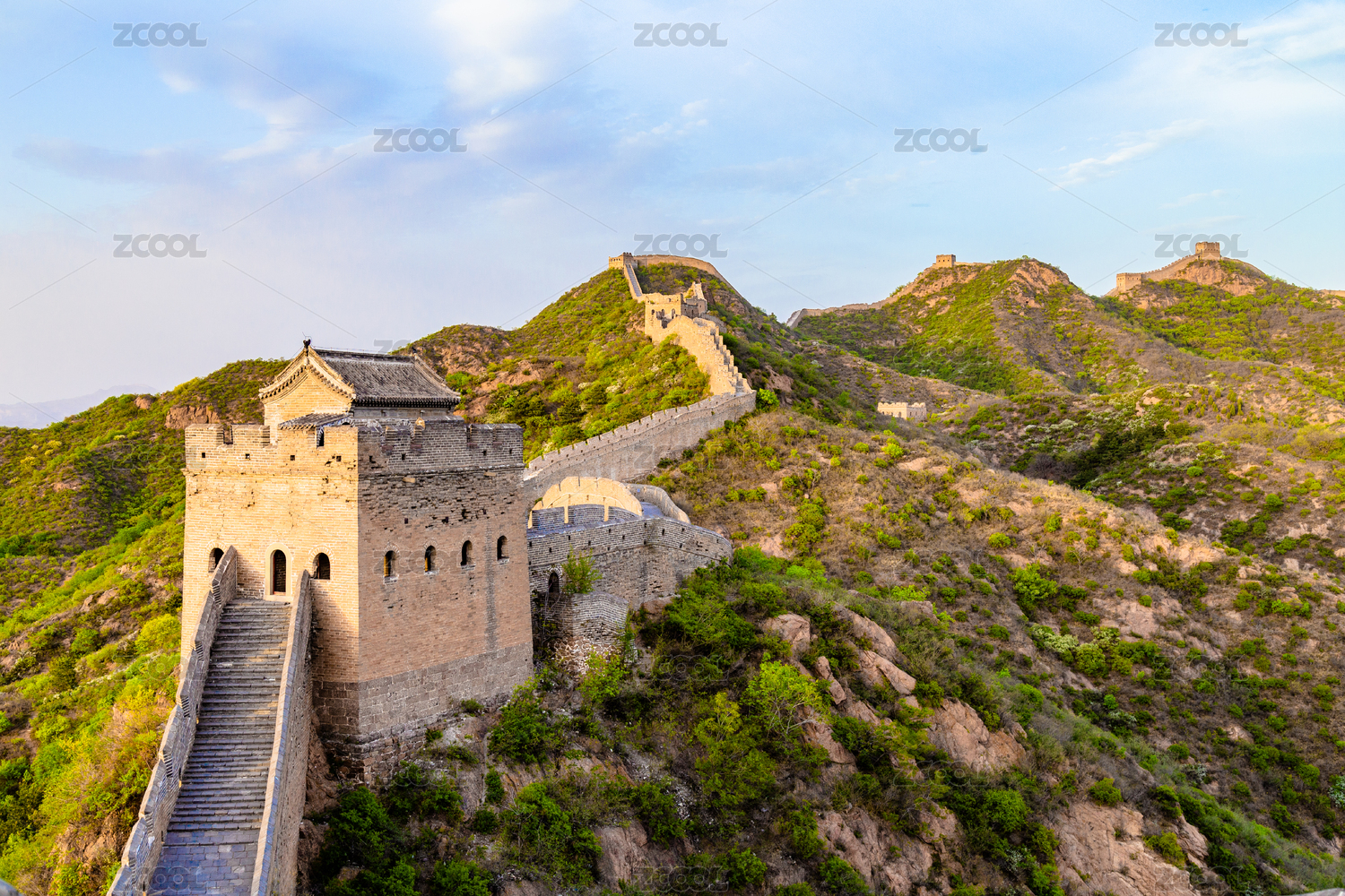 蓝天白云下的中国长城蜿蜒盘旋丛山峻岭