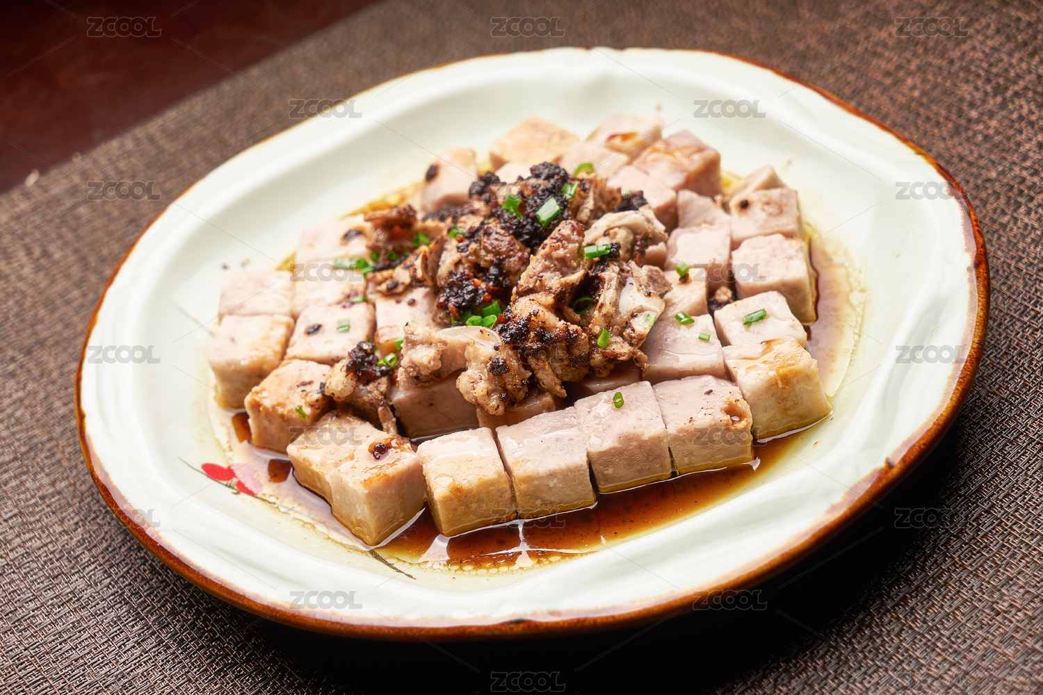 放在黑色盘子的广东菜肴豆豉汁排骨