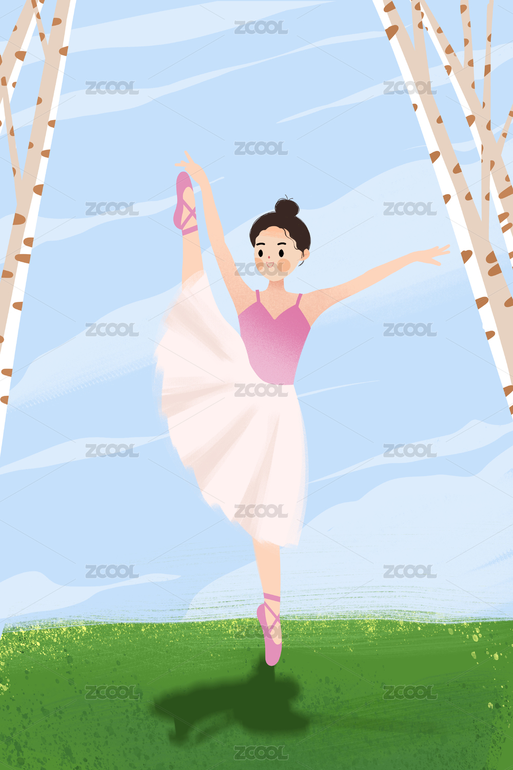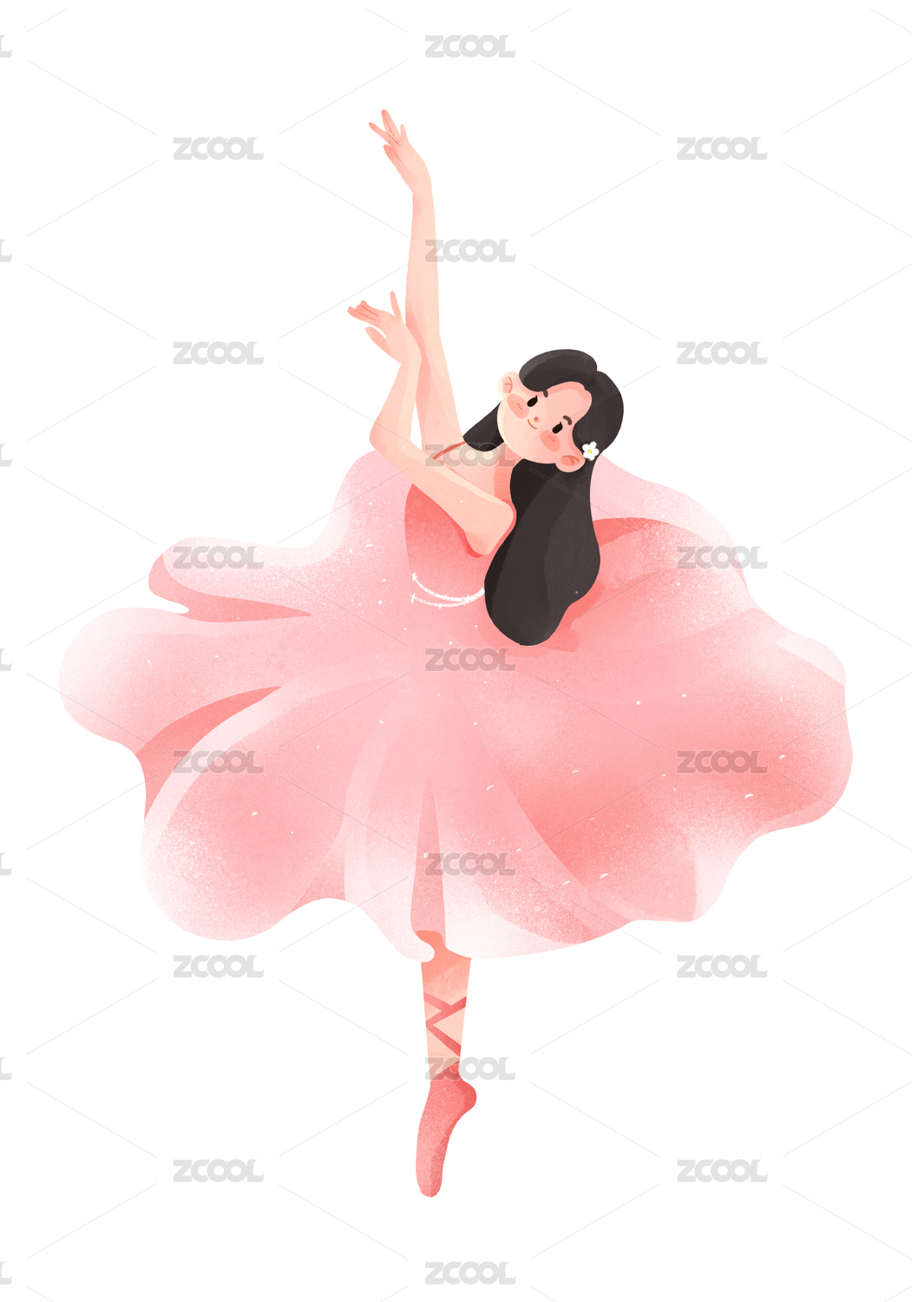 水彩风格小清新女孩跳芭蕾舞插画人物元素