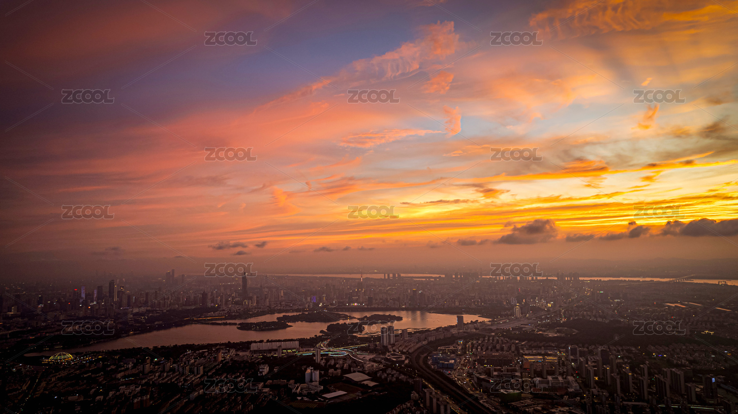 洛阳城市CBD楼房建筑天际线日出朝霞航拍