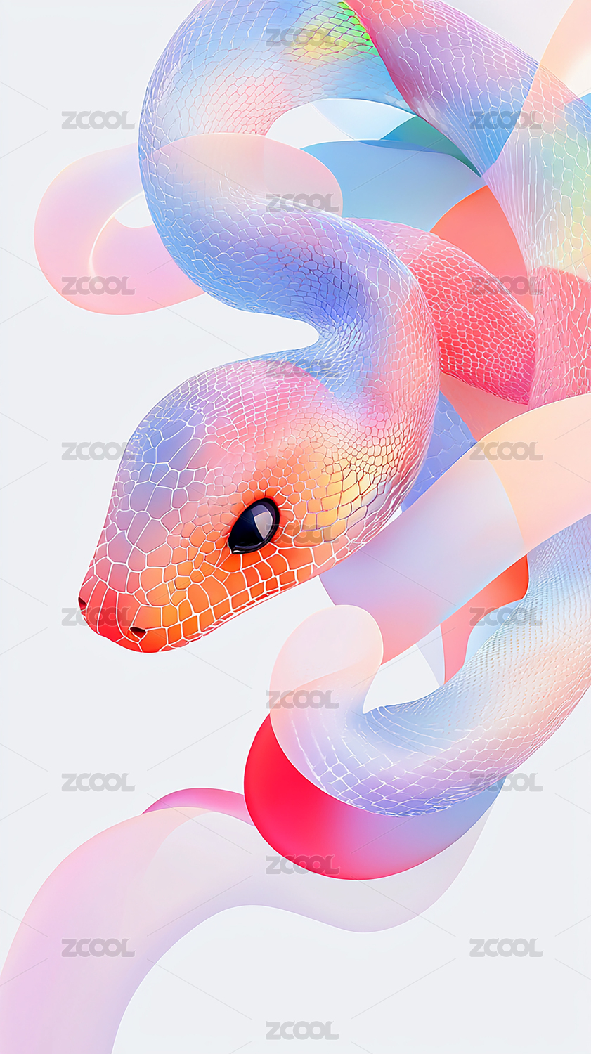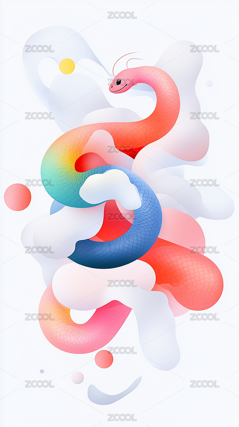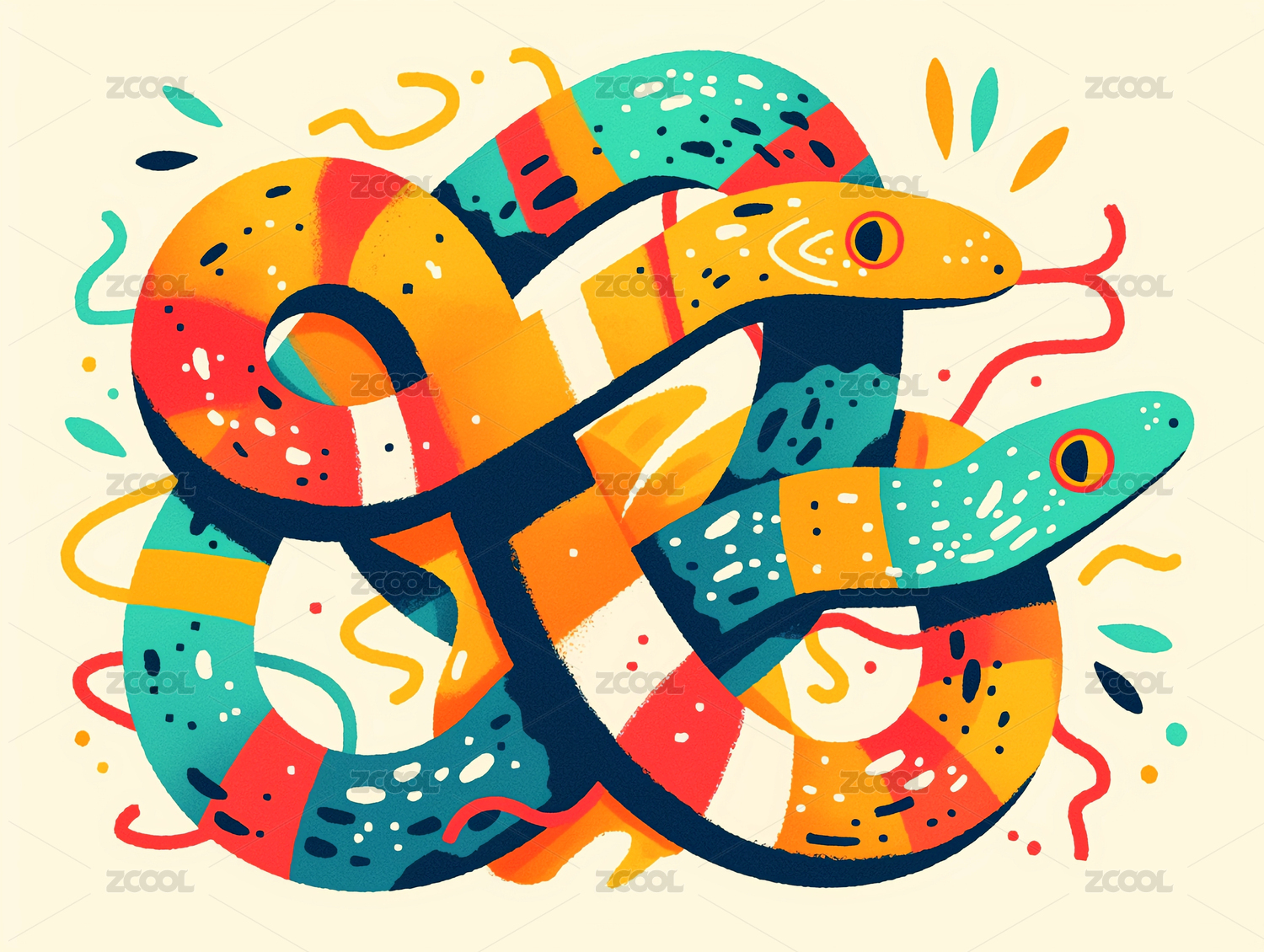 蛇年贺图,装饰蛇,乙巳蛇年,装饰画