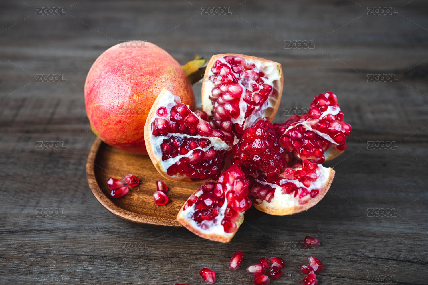 石榴,红色,甜,甜蜜,秋天,石榴籽,木桌,木头,木盘,丰收