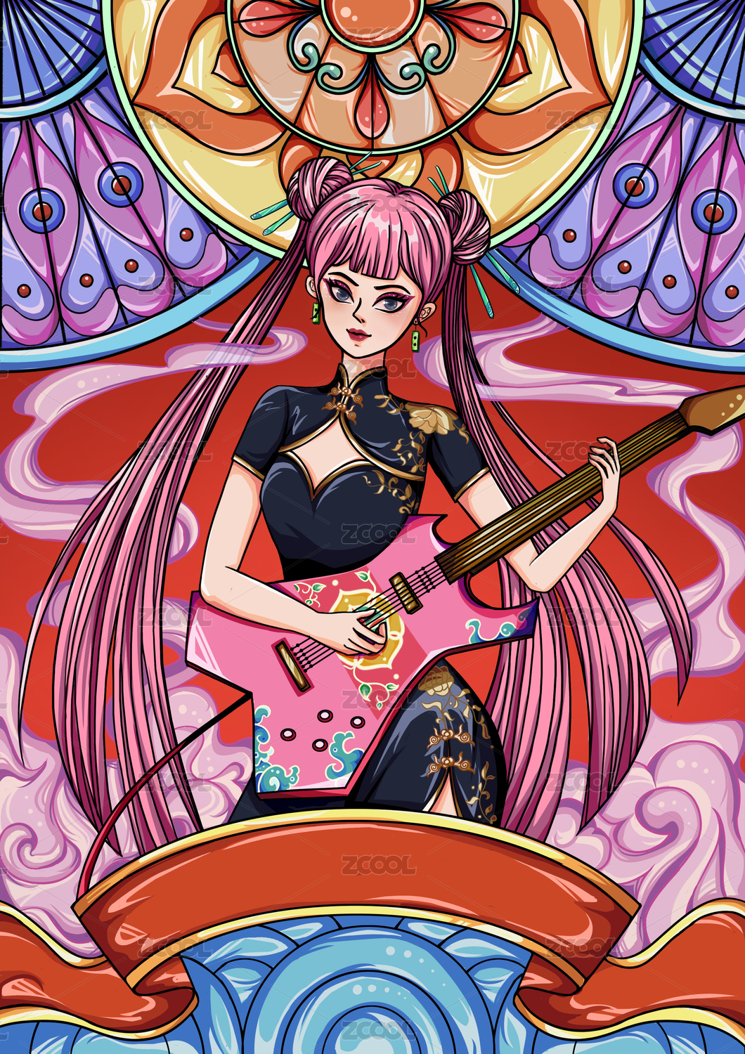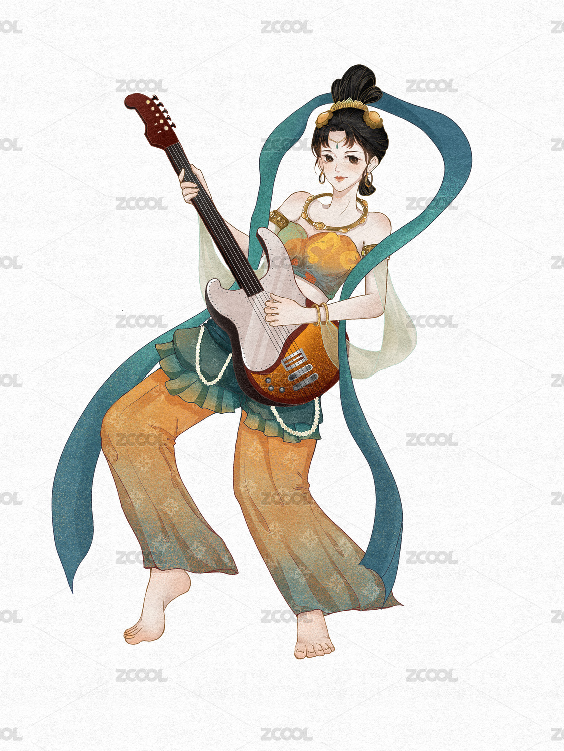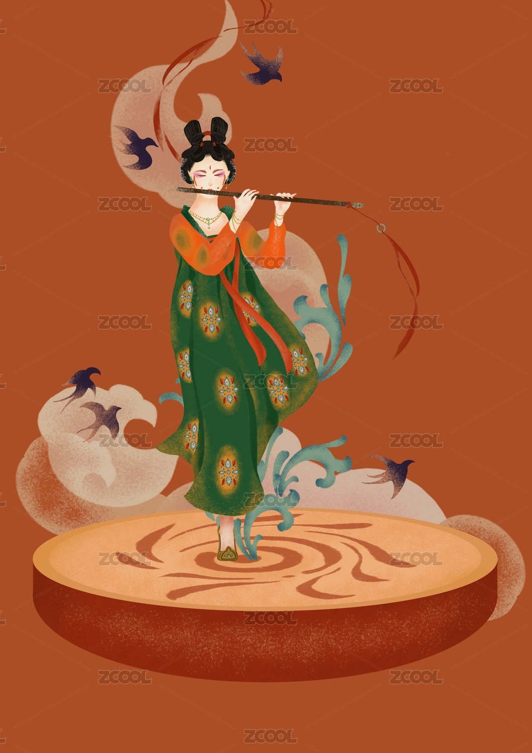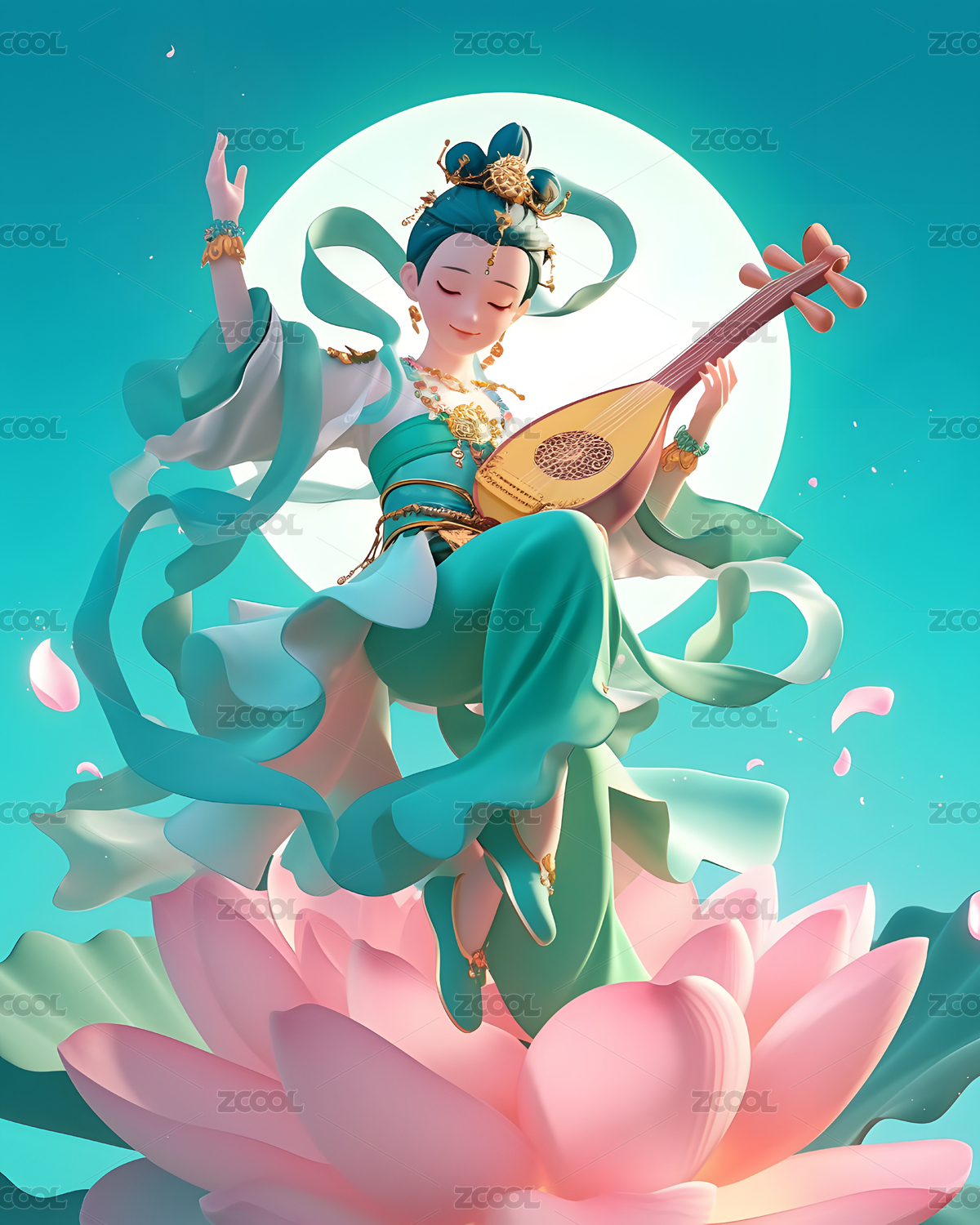 敦煌,飞天,中国风,国潮,舞蹈,祥云,笙,琵琶,腰鼓,鼓