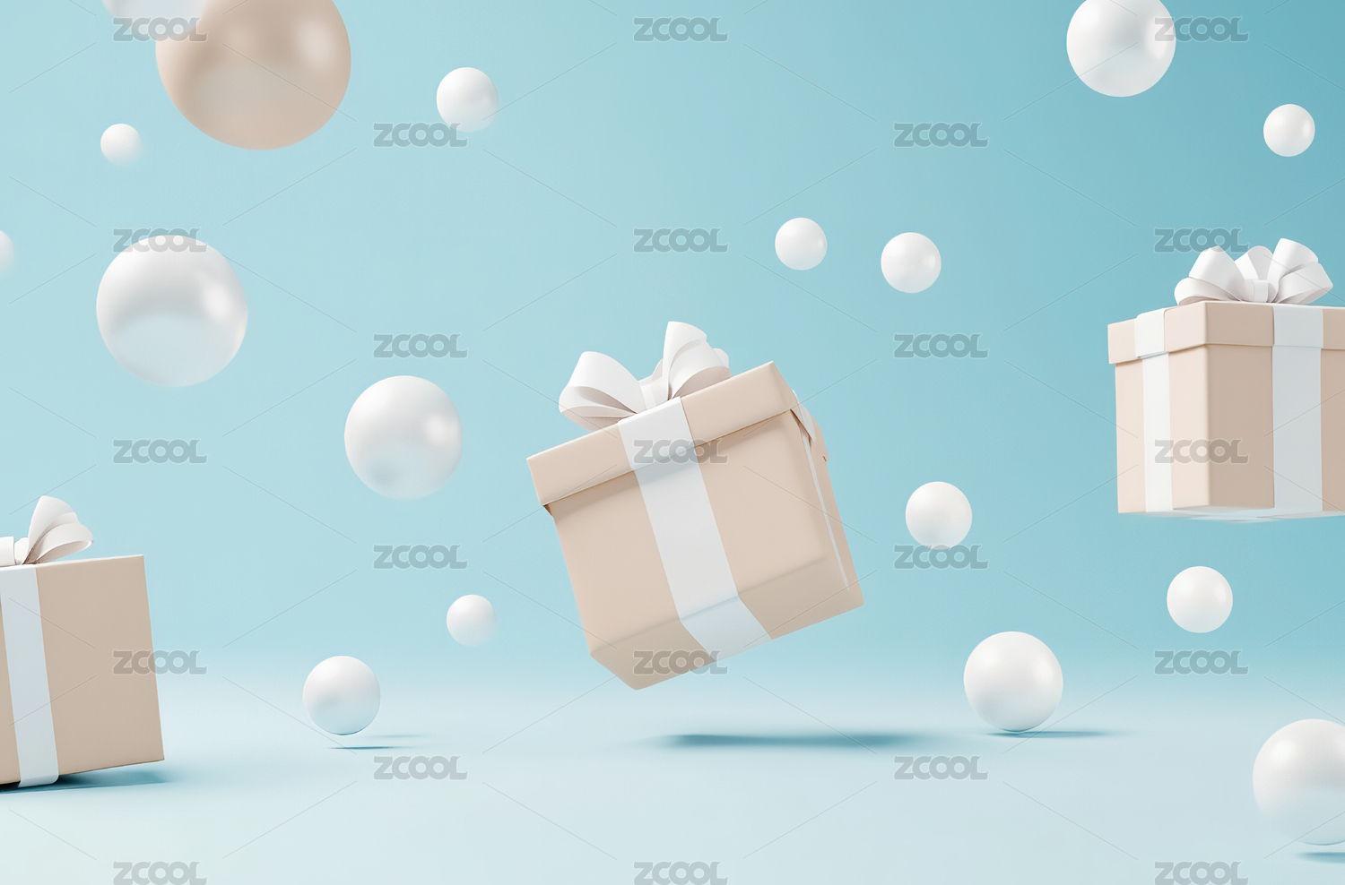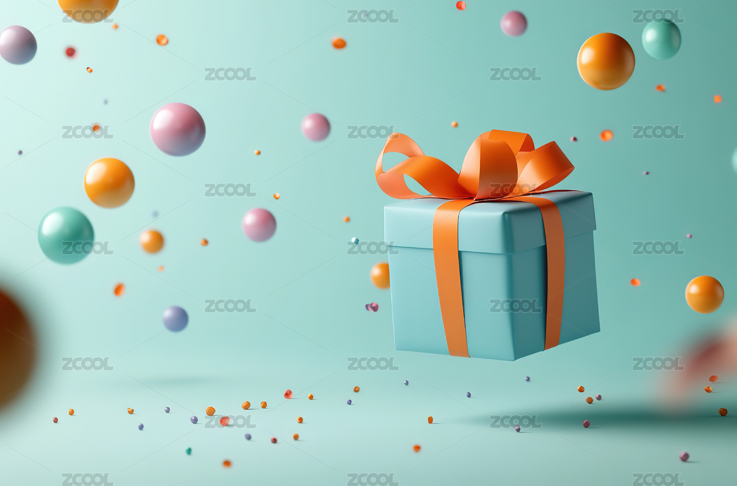 漂浮的彩球与礼物盒