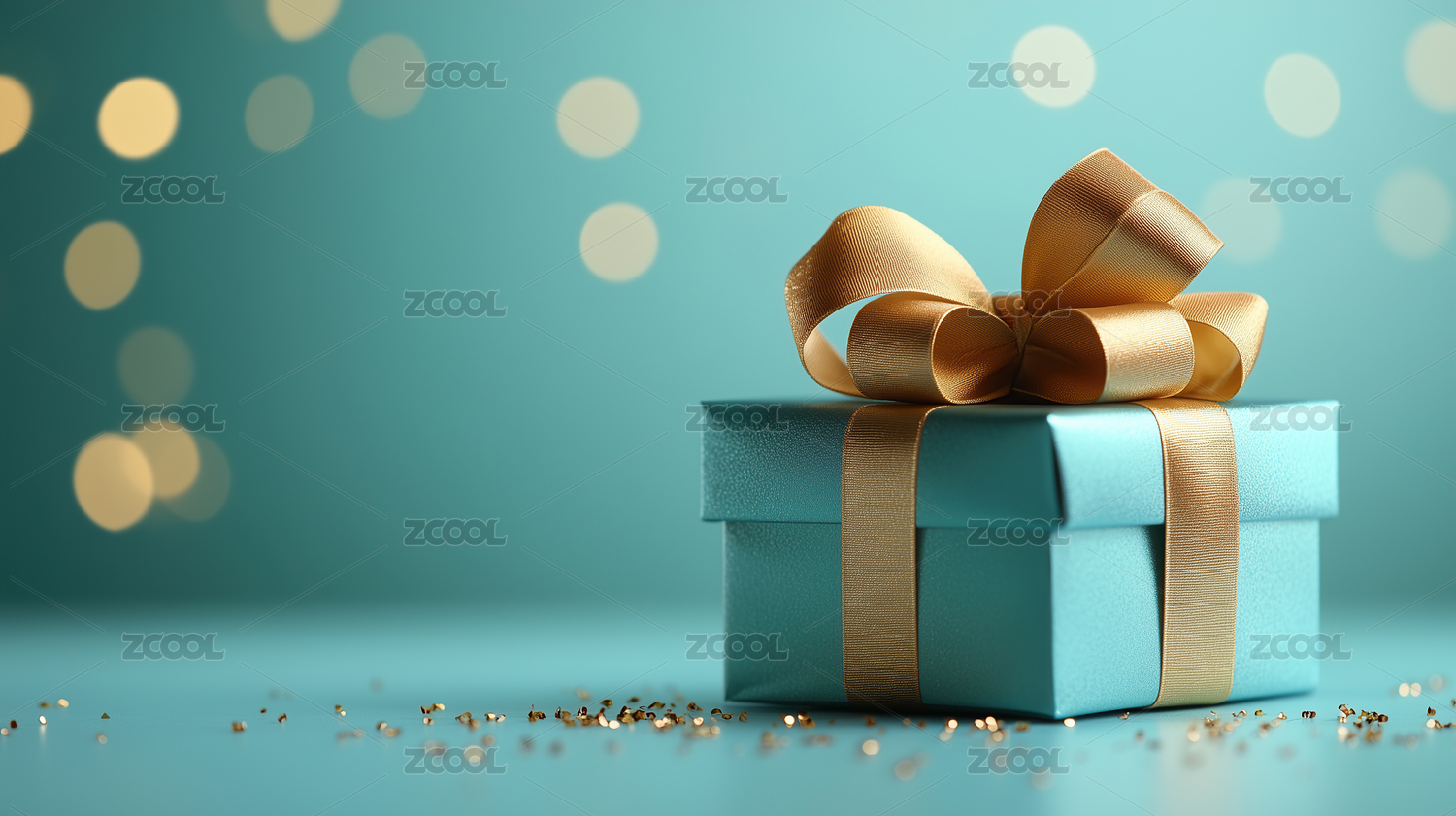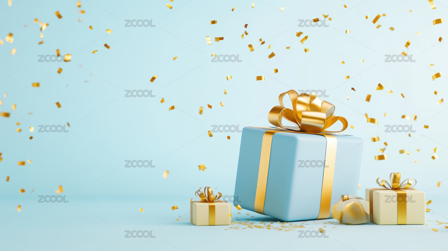 蓝色礼盒与金色五彩纸屑