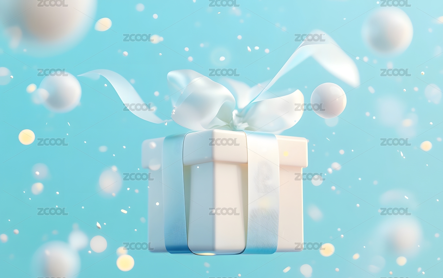 DXCZ202401,礼物盒,3D,蓝色,建模,漂浮,球体