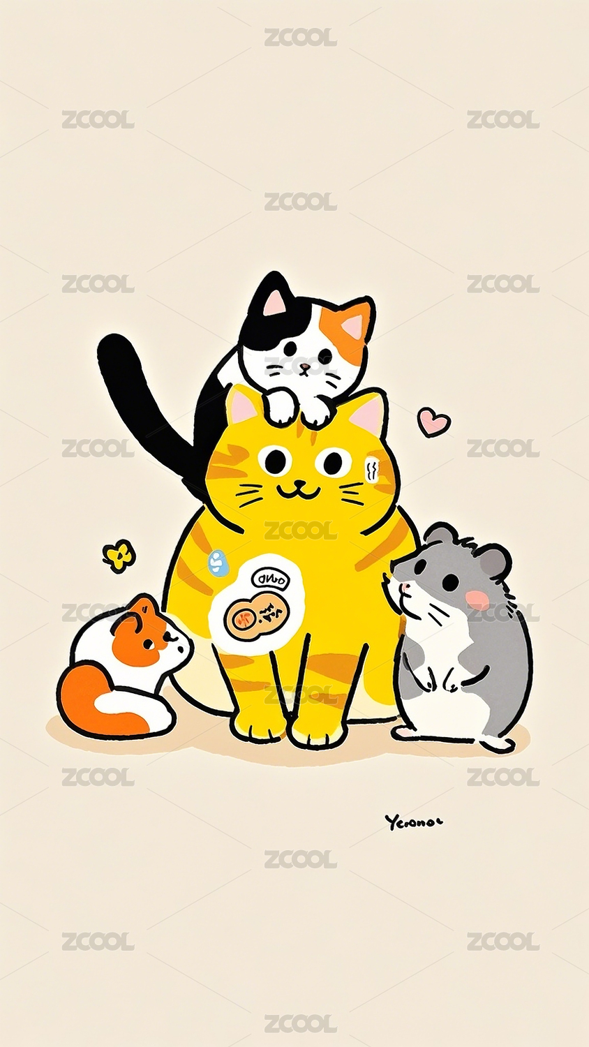 卡通叠叠猫插画