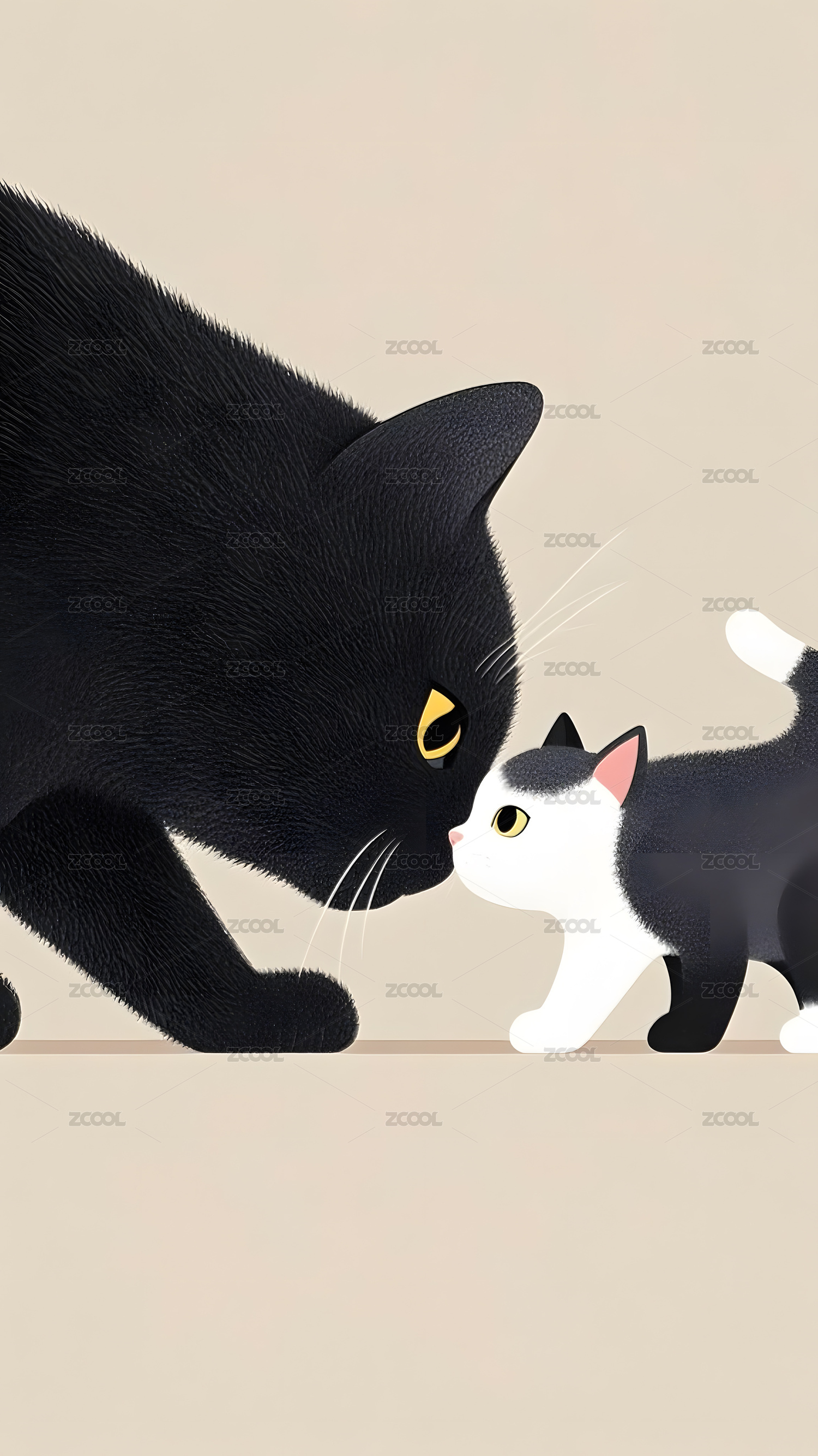 极简插画黑白猫