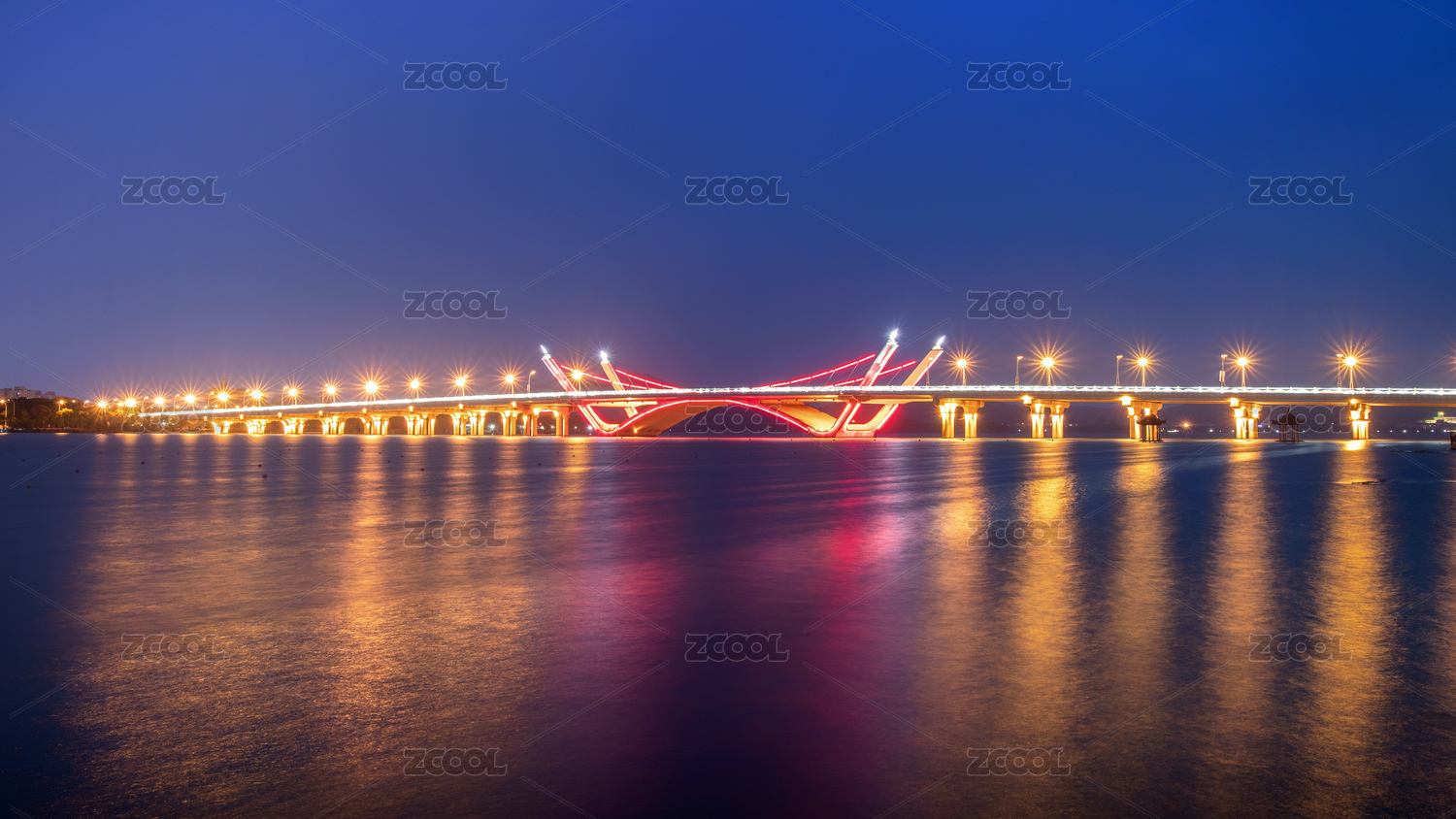 江苏无锡市太湖畔的蠡湖大桥夜景
