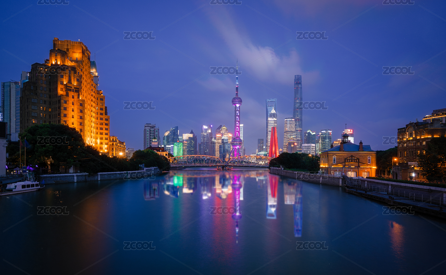 上海外滩陆家嘴东方明珠苏州河外白渡桥夜景