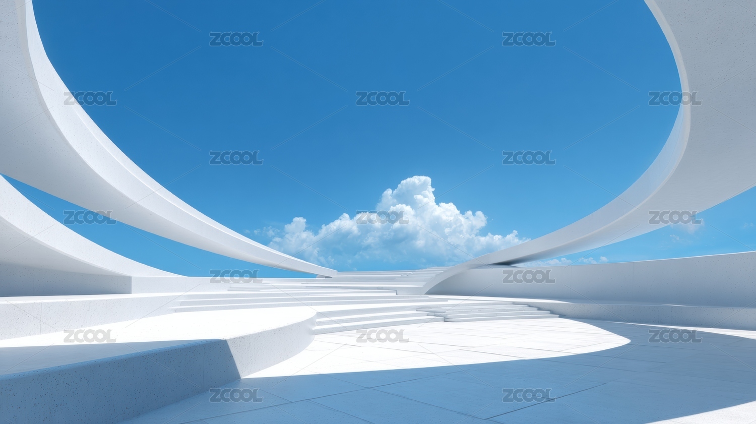 极简弧形建筑汽车背景图