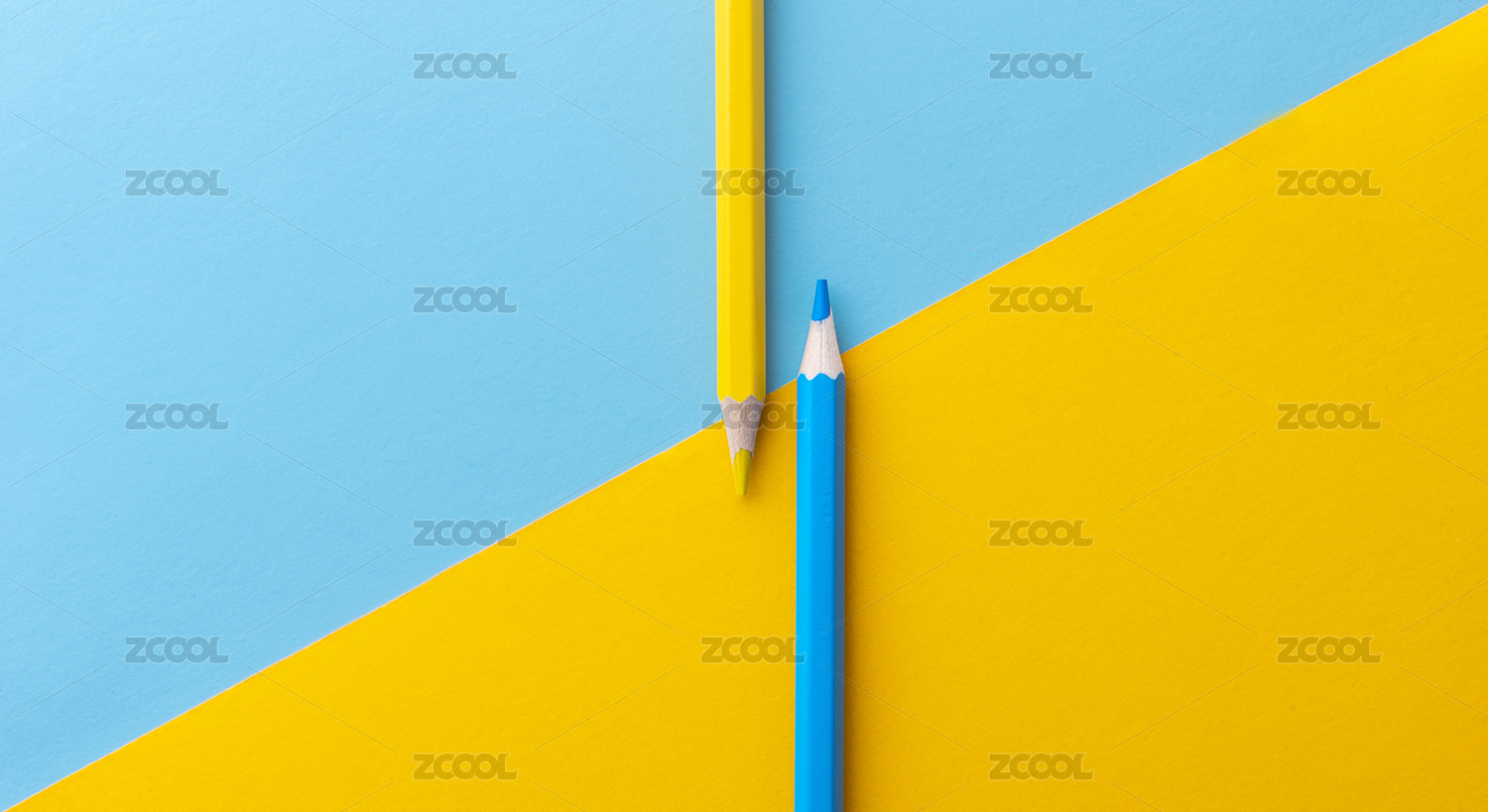 蓝黄背景上的彩铅笔
