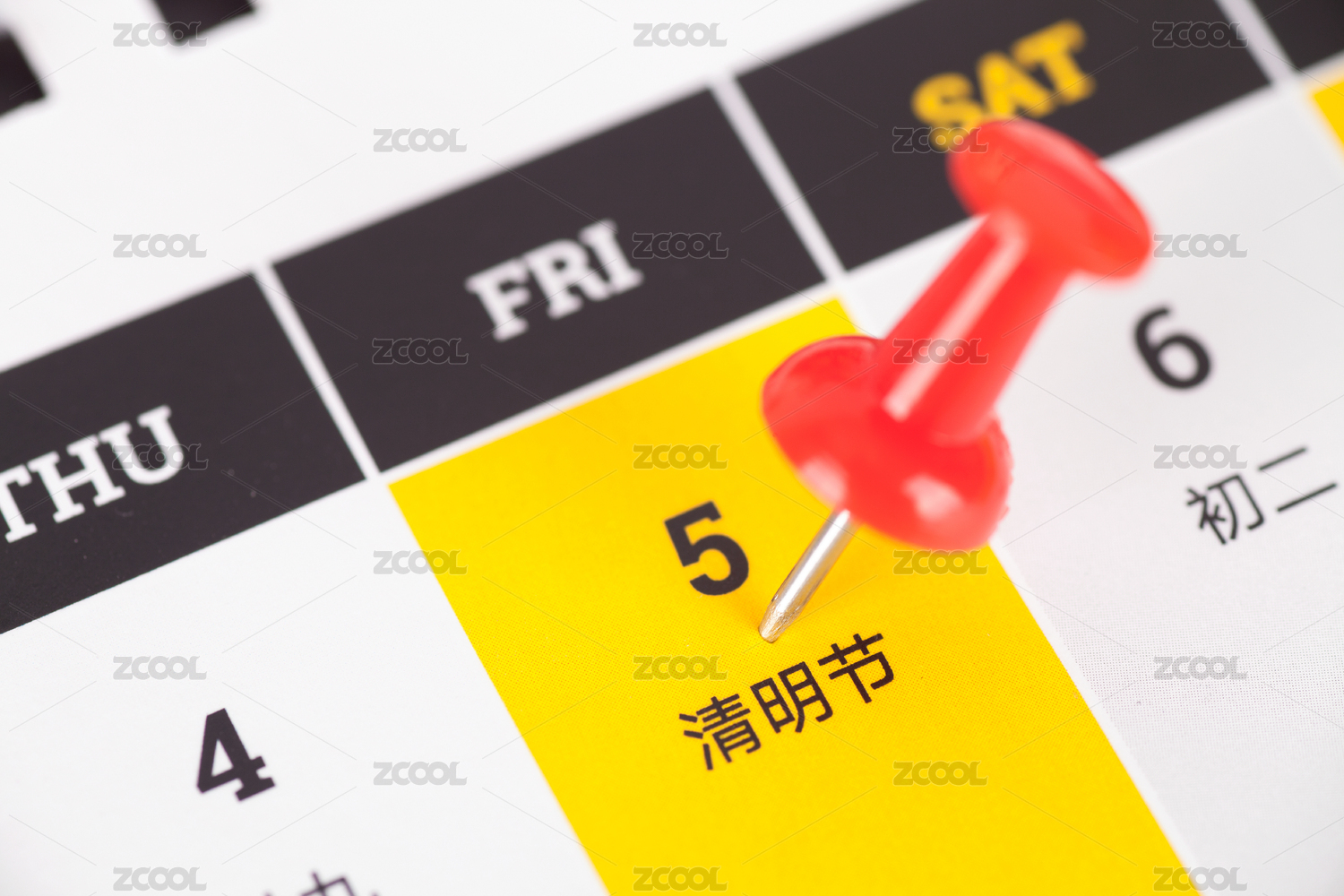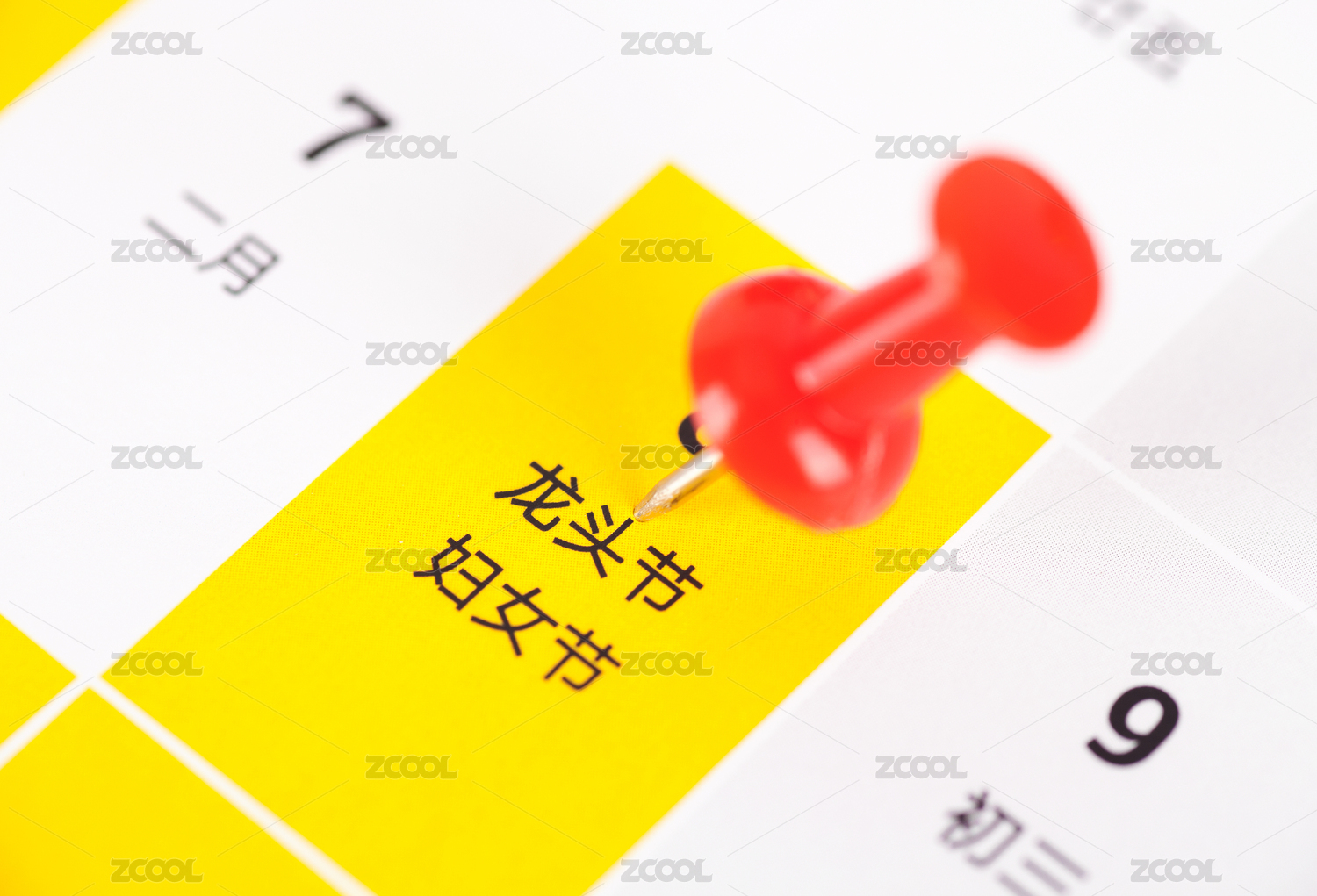台历上被大头钉标注的中国24节气之一的雨水和传统节日元宵节