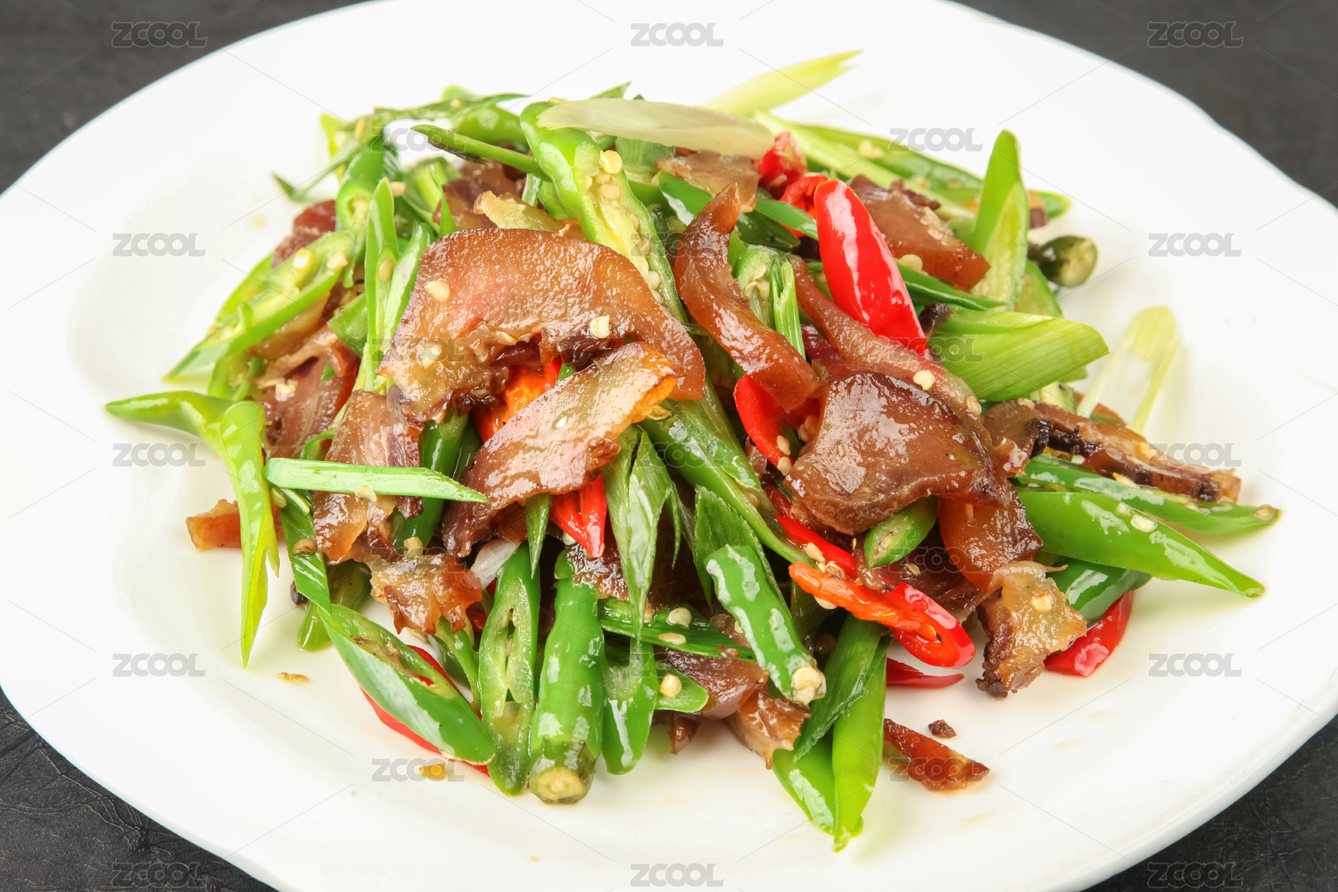 盘子里的爆炒牛肉青菜炒肉片小炒肉