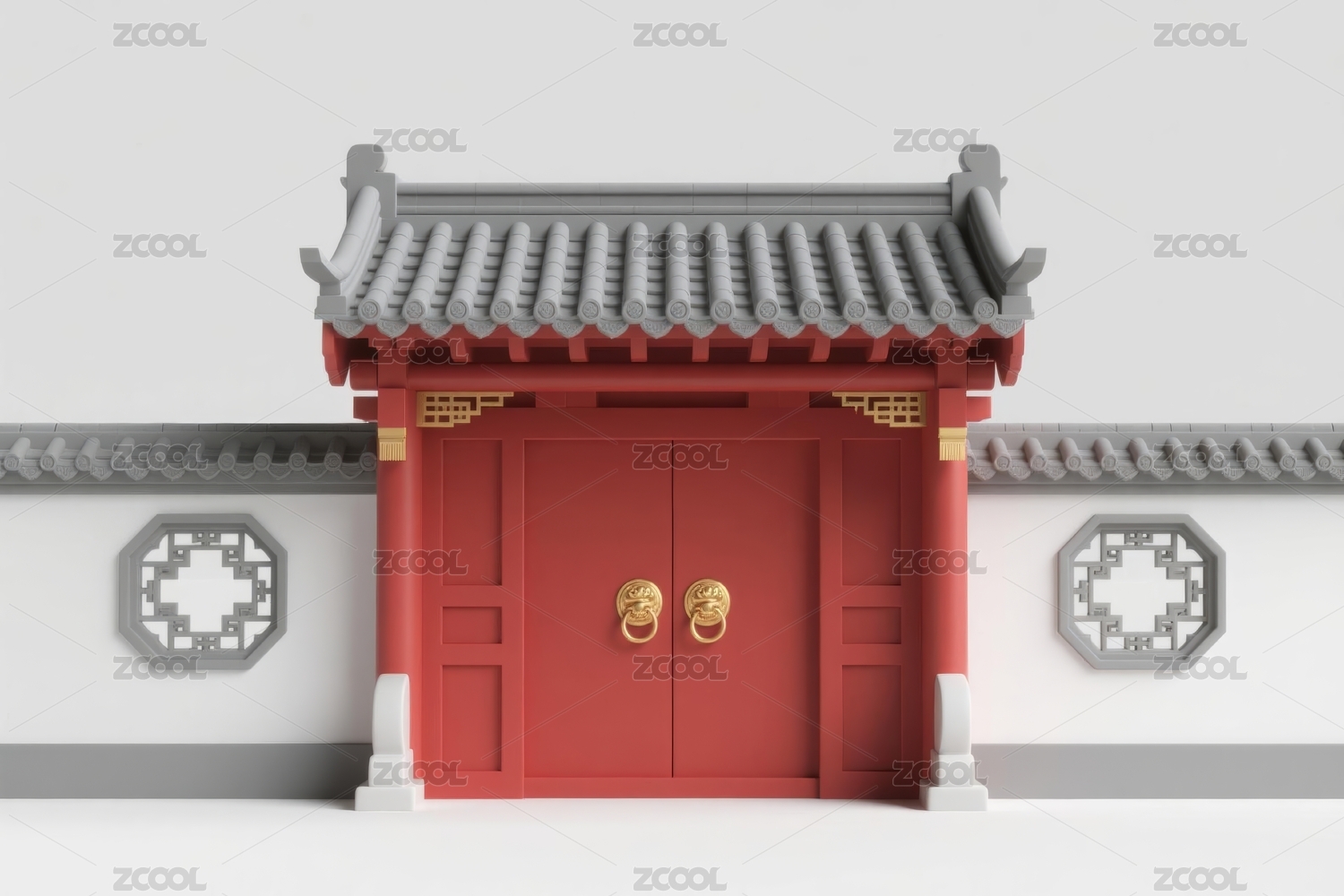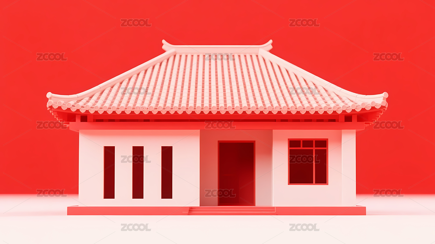 3D,建筑,模型,喜庆,新年,中国风,传统,复古,古风,古老