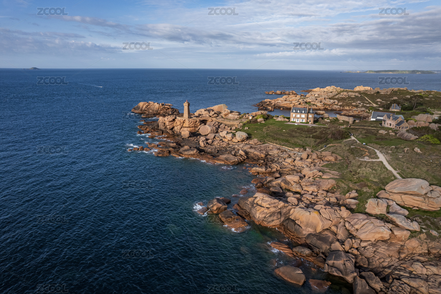 法国布列塔尼玫瑰海岸黄昏自然风景航拍