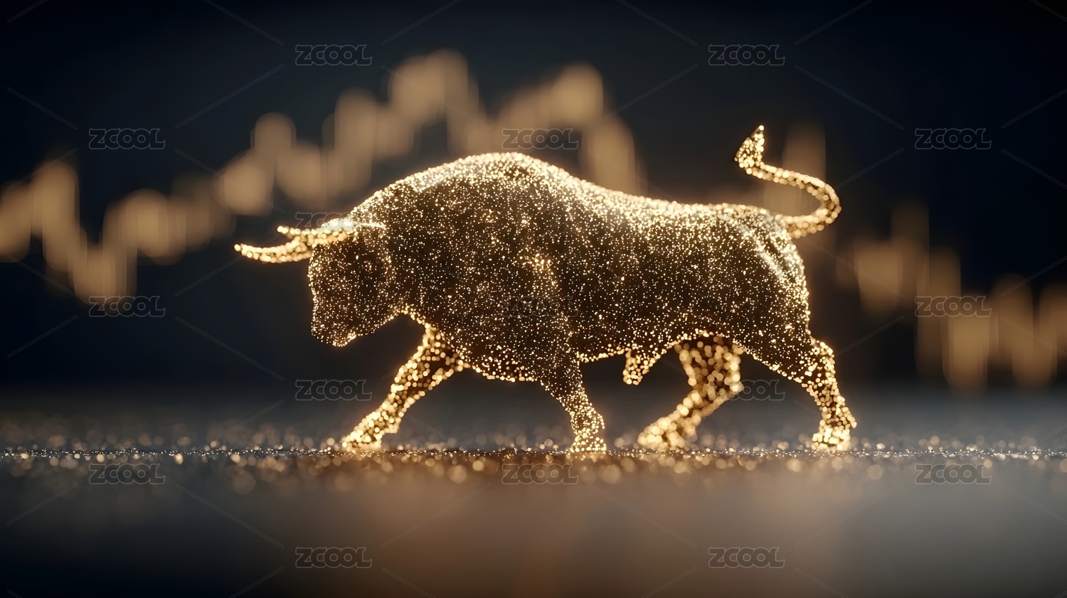 一头铜牛背后跳动金色的K线图