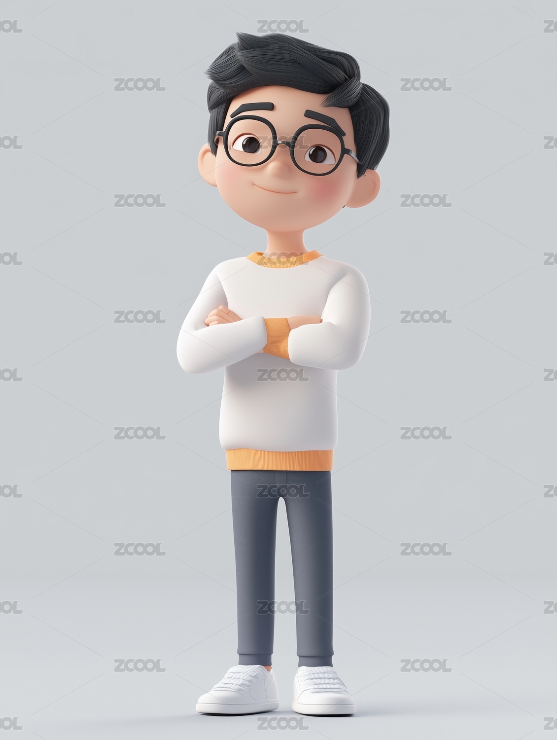 灰色背景下戴着眼镜的可爱男孩的肖像