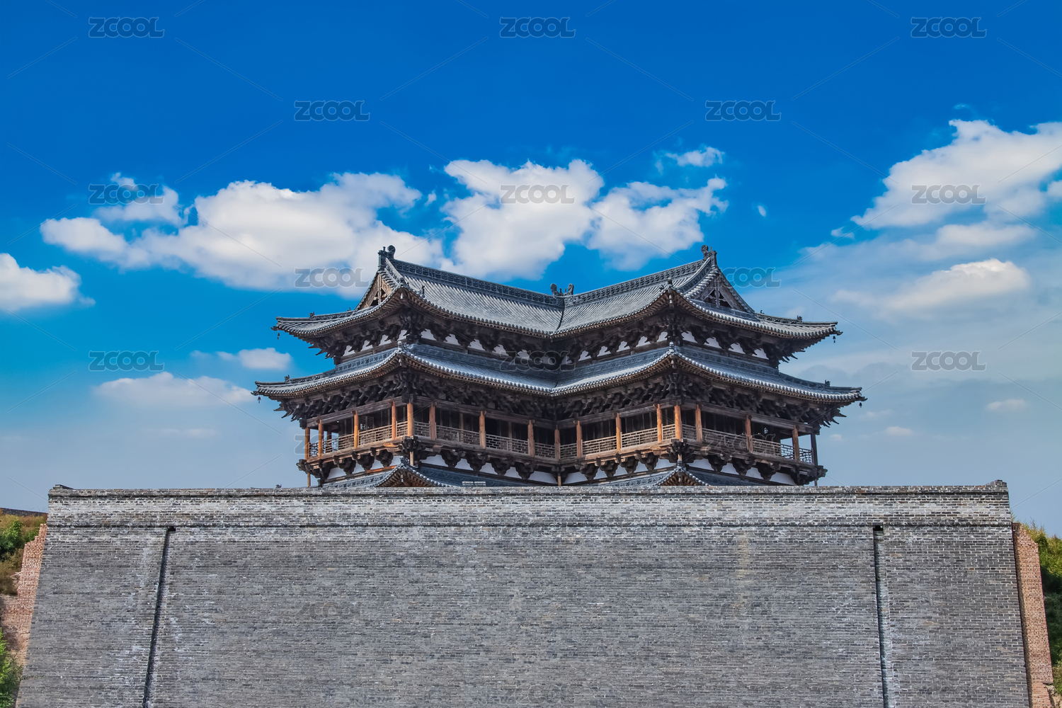 中国山西省代县城区明代古城墙园林建筑