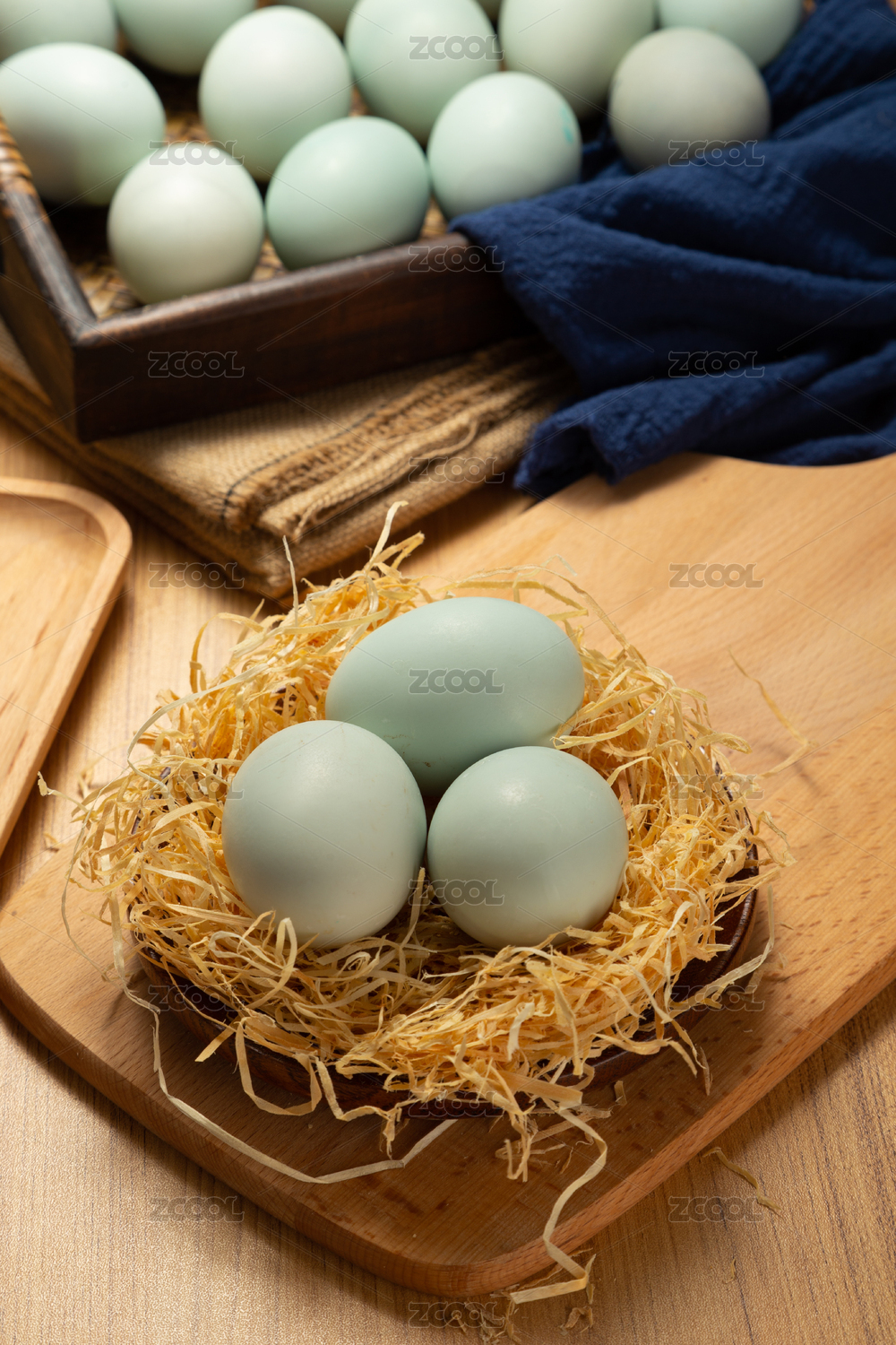 拉菲草中摆放的天然草鸡蛋