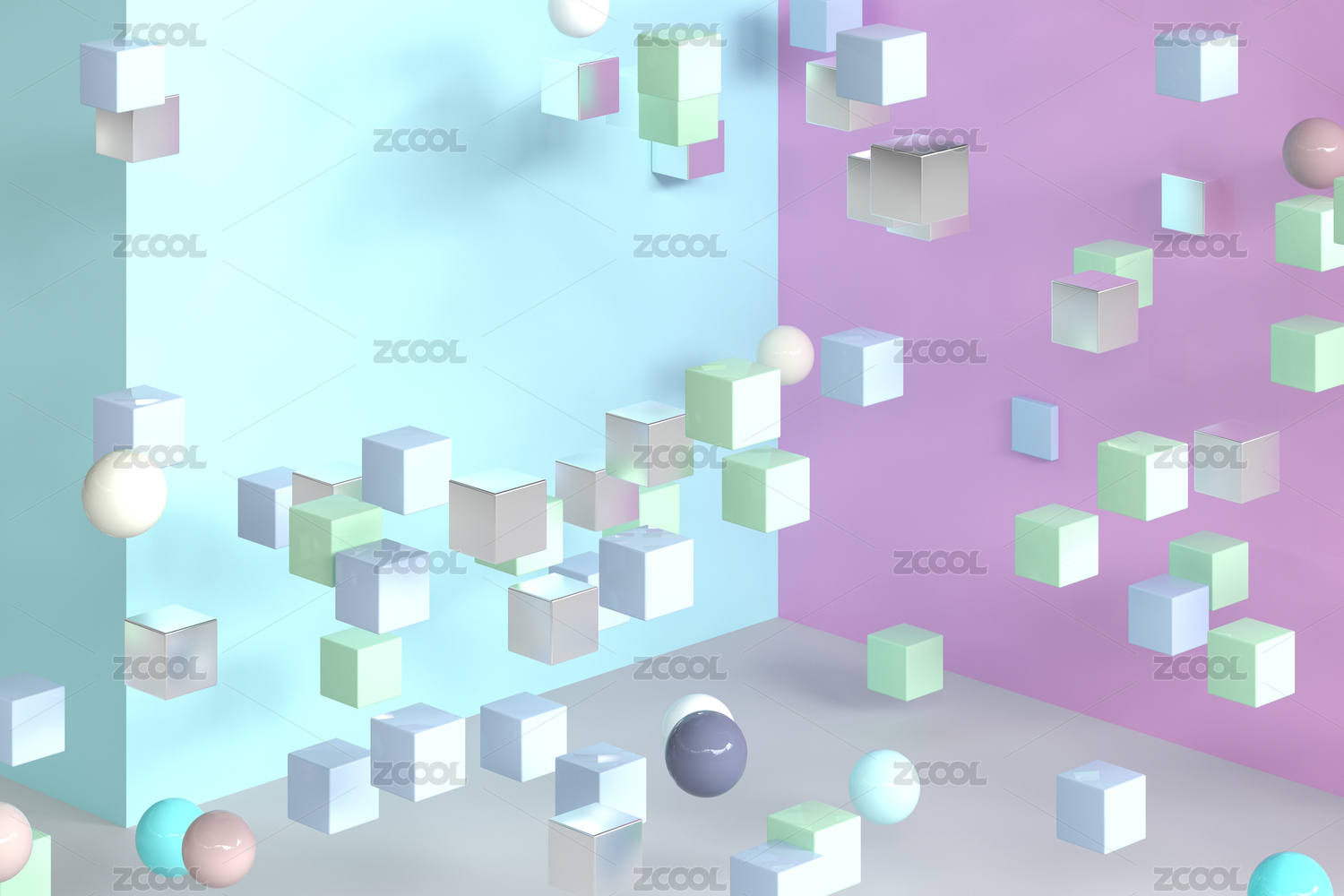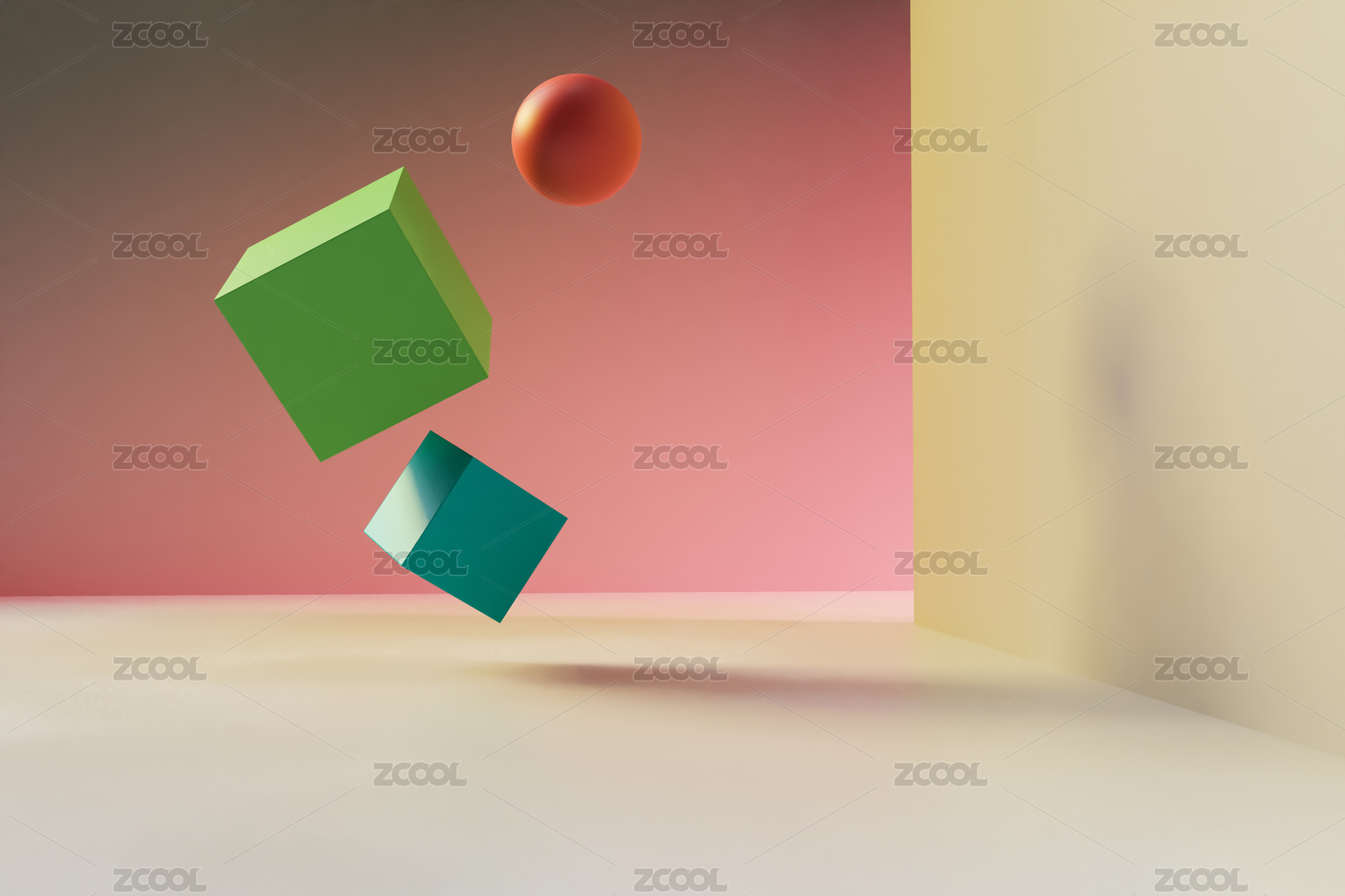 3D,立方体,组合,展示,平台,圆形,球形,方块,方砖,装置艺术