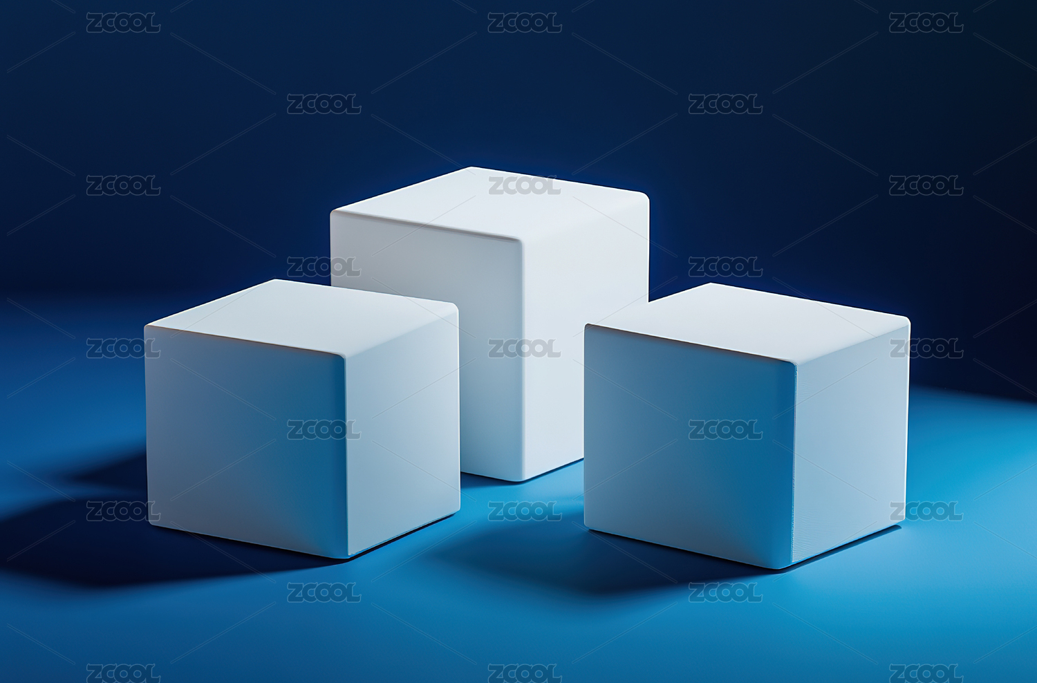 蓝色背景下的几何立方体组合