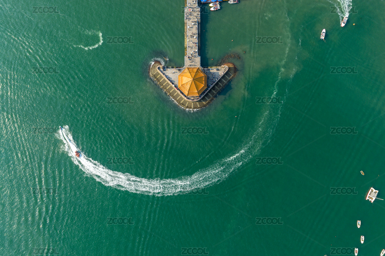栈桥,青岛,回澜阁,旅游,城市,航拍,海水,快艇,码头,海鸥