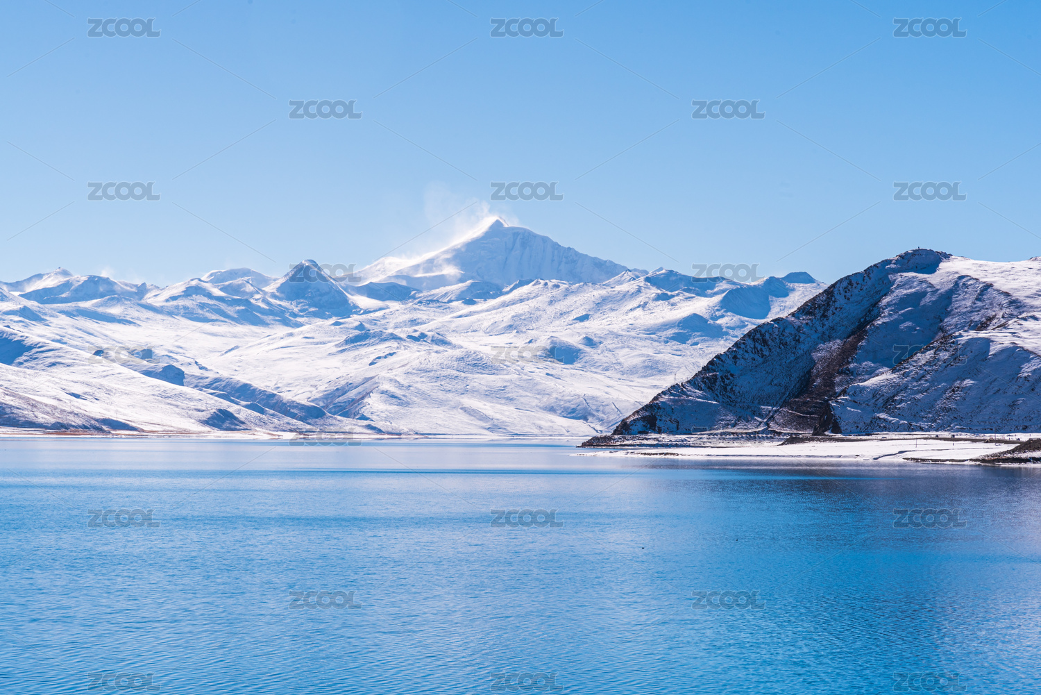 中国西藏羊卓雍措湖羊湖冬季雪景