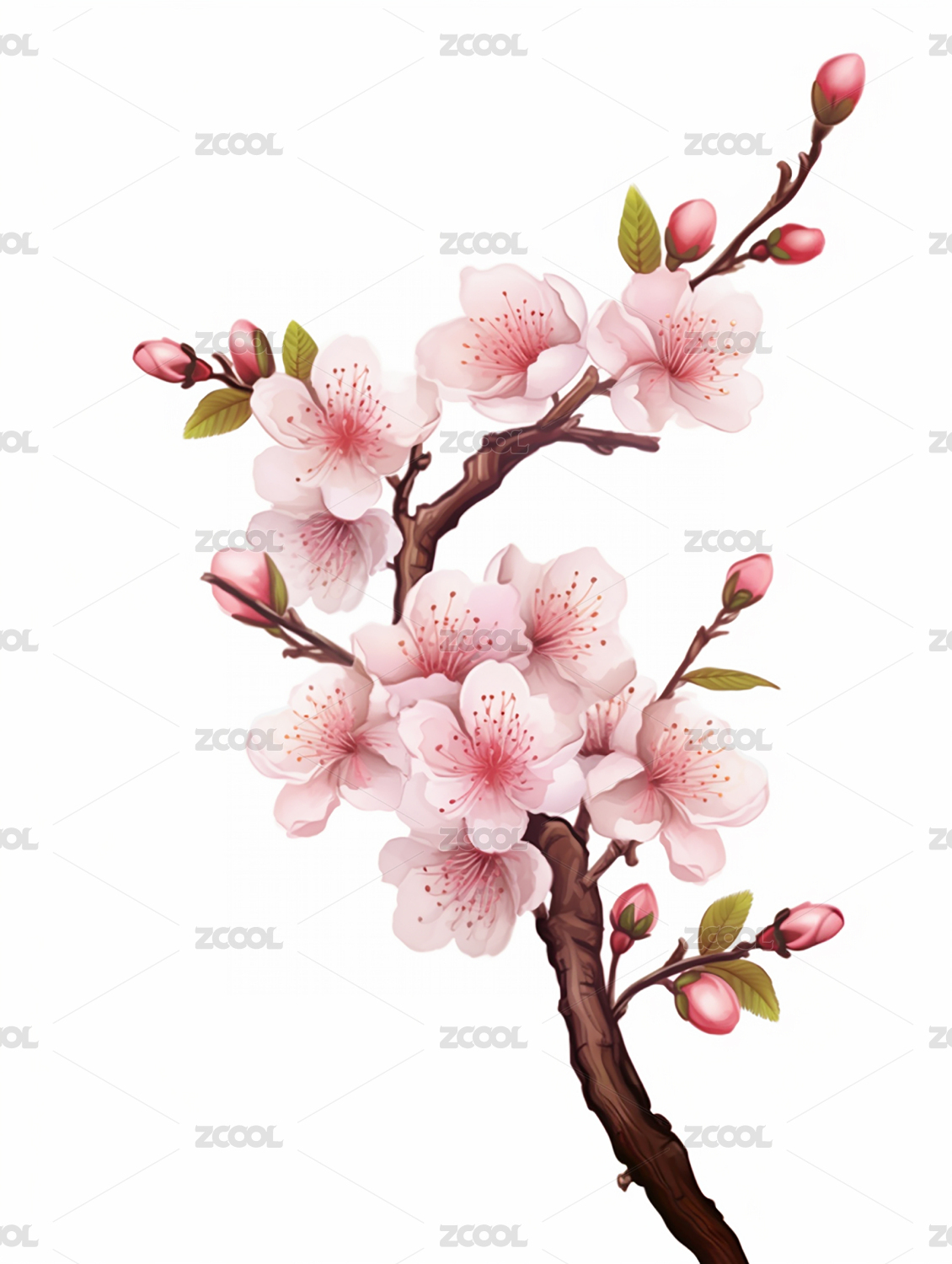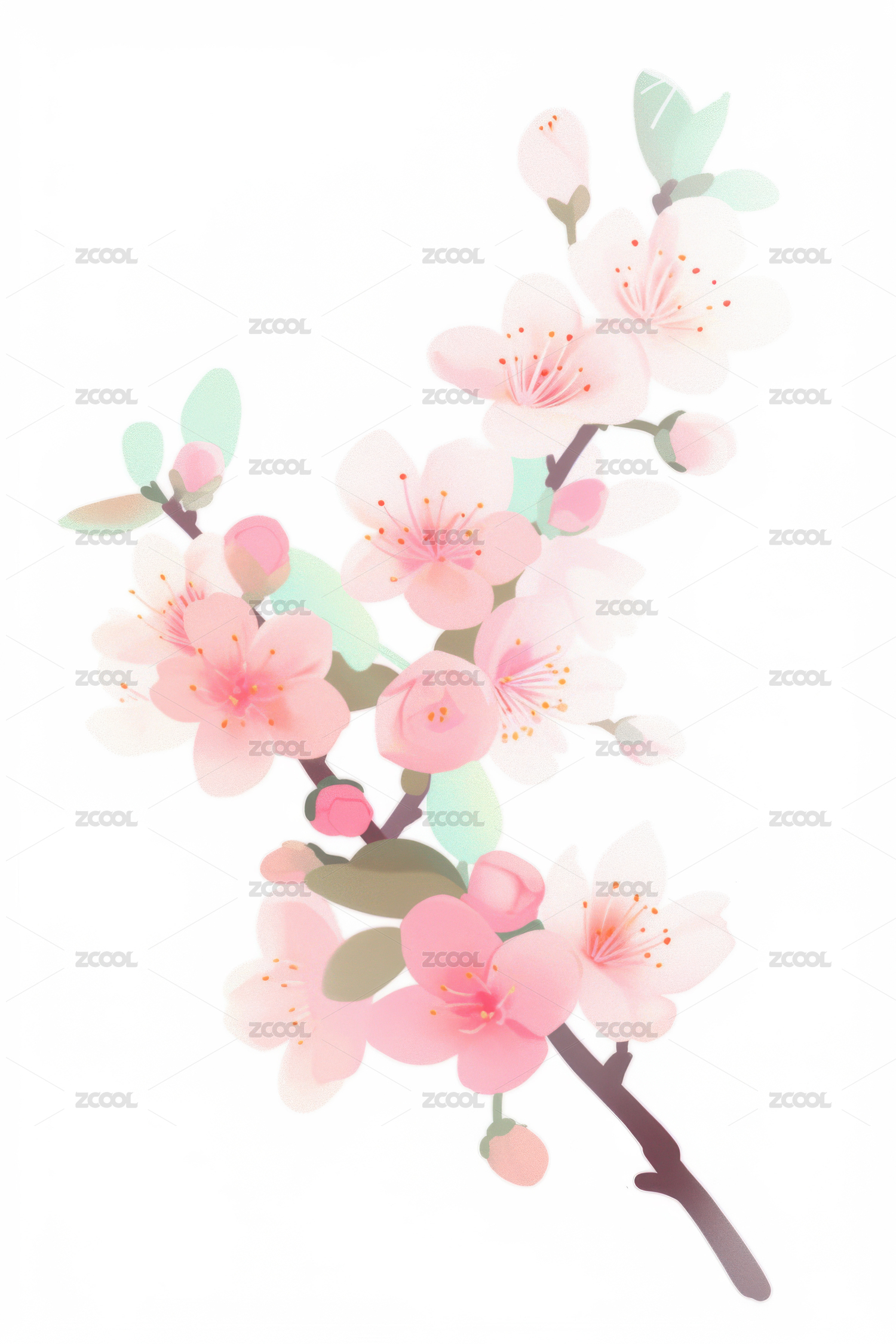 春天,花朵,桃花,水彩,花卉,插画,春分,惊蛰