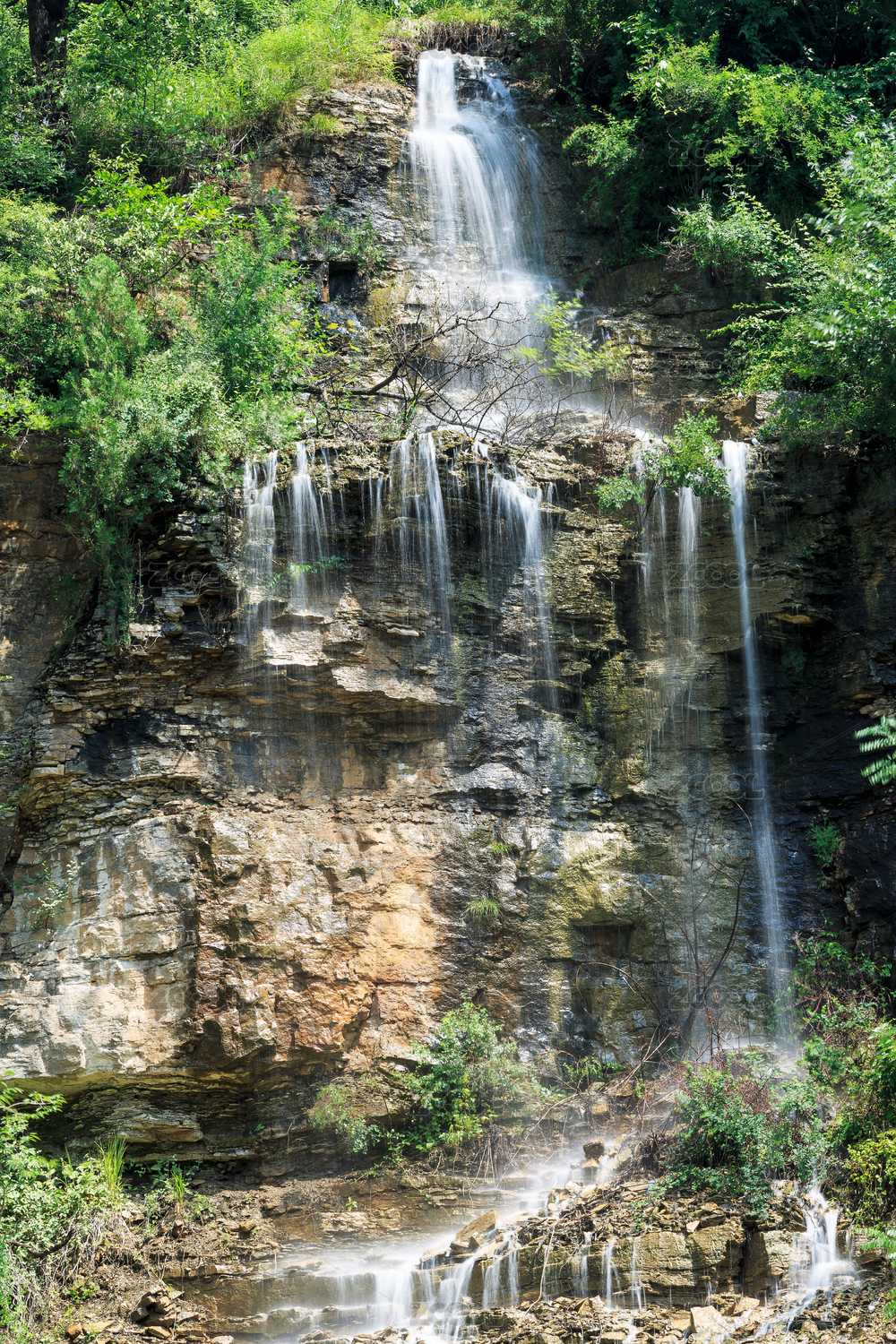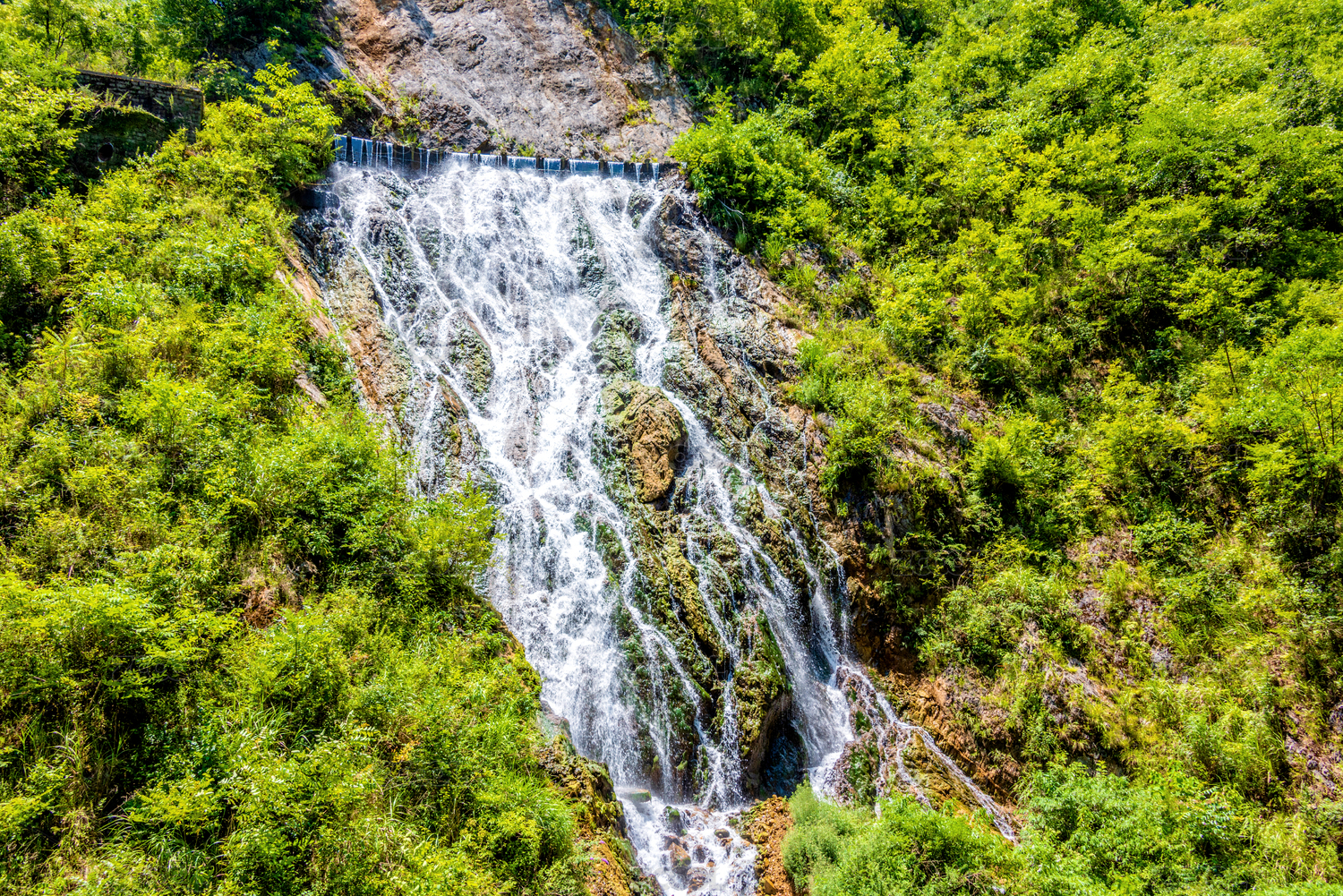 山东枣庄山亭区群山之中的飞瀑流泉美景