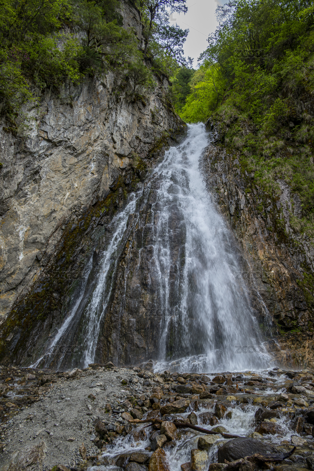 中国西藏聂拉木县樟木口岸附近悬崖瀑布