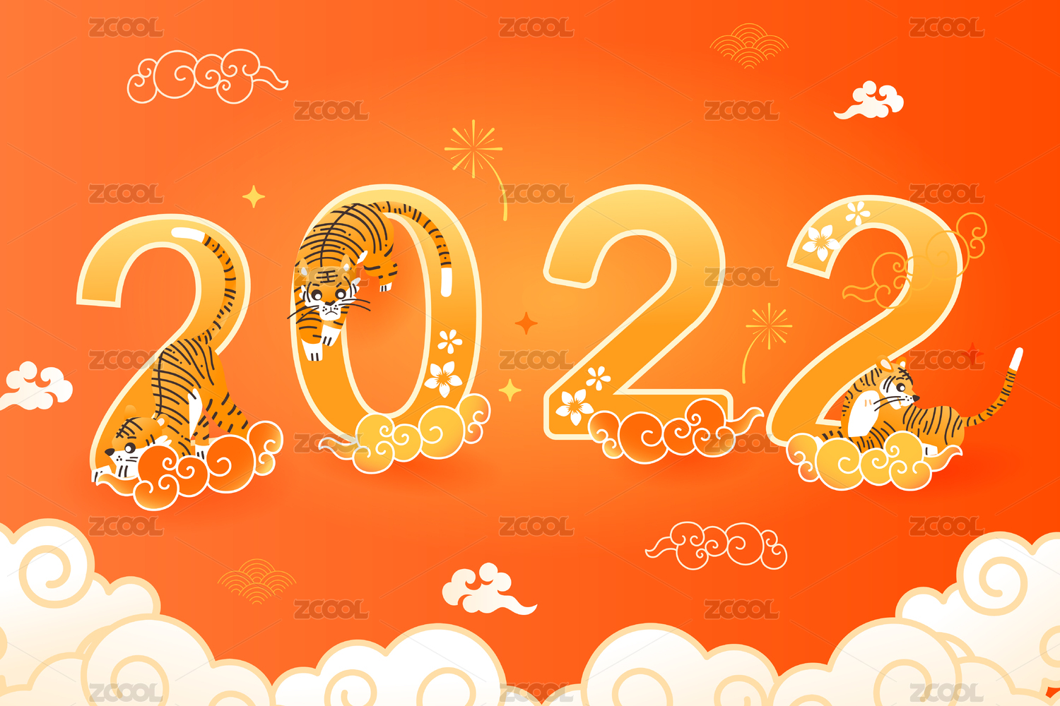 2022虎年春节矢量插画
