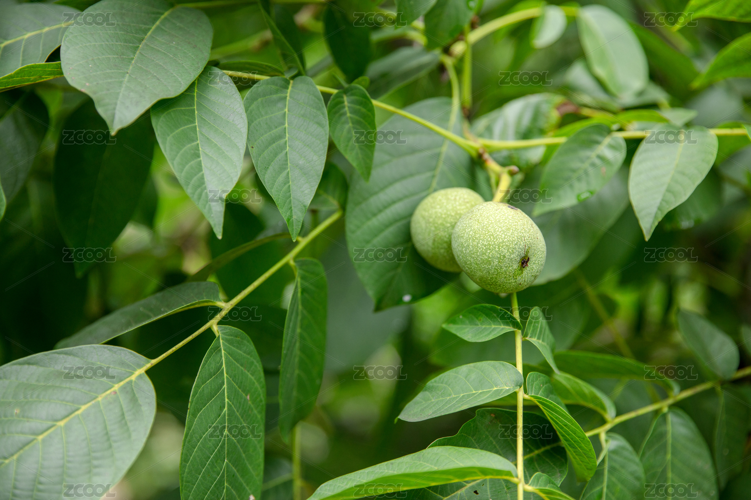 夏天郁郁葱葱核桃树挂满青涩核桃