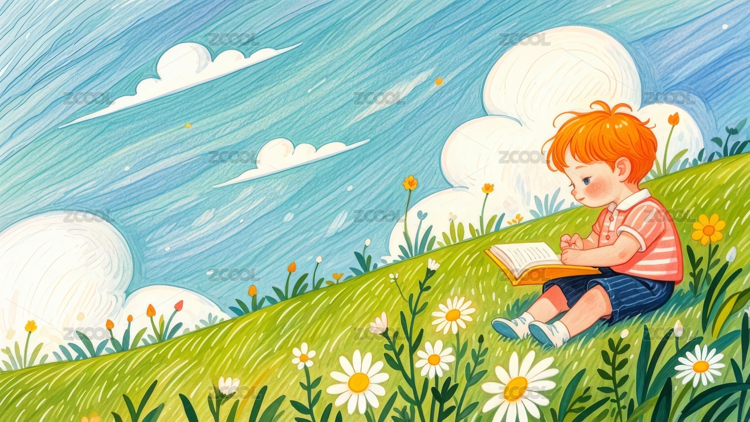 卡通,男孩,人物,形象,可爱,空白,纸,试卷,牌子,空白板