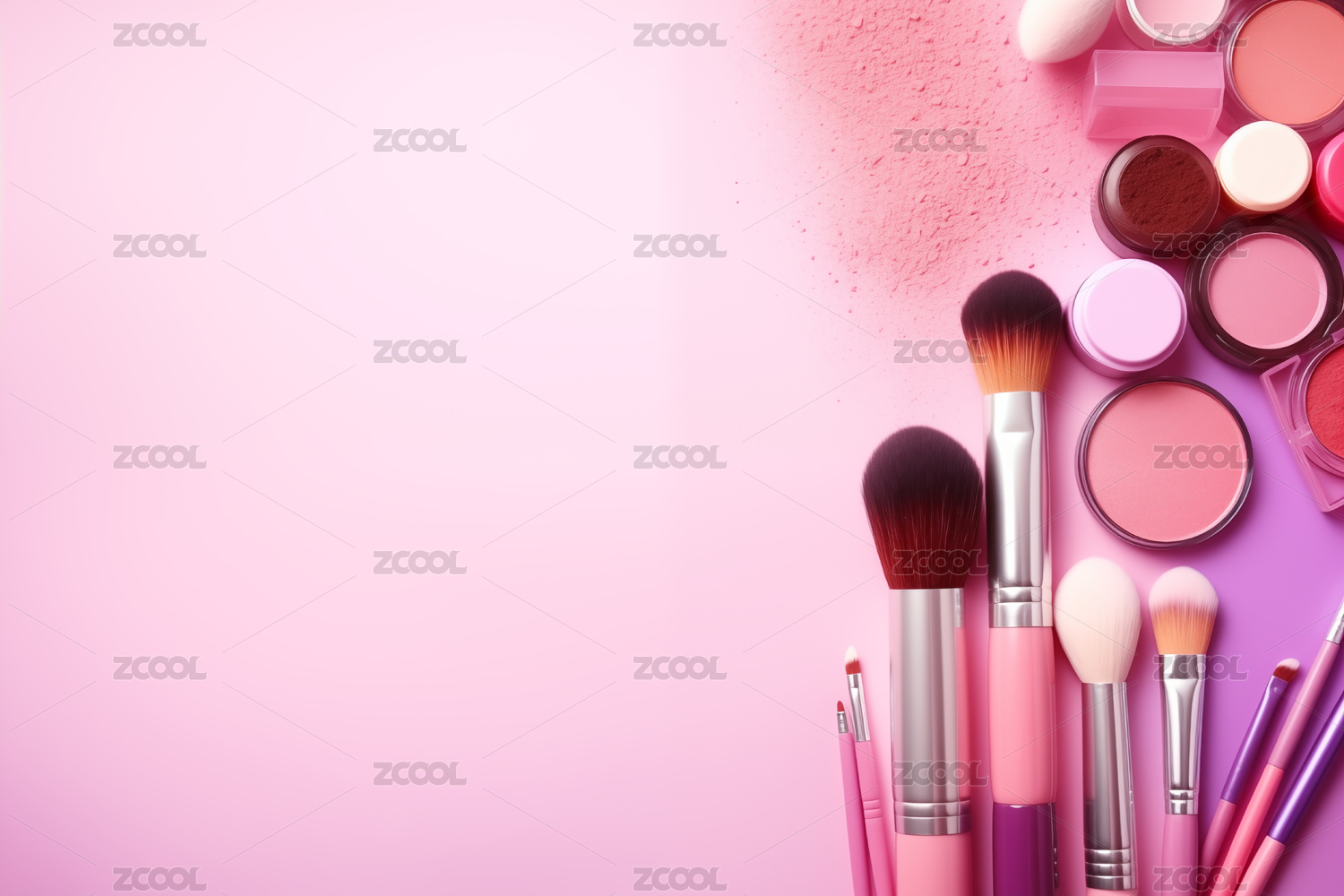 粉色化妆品与刷子
