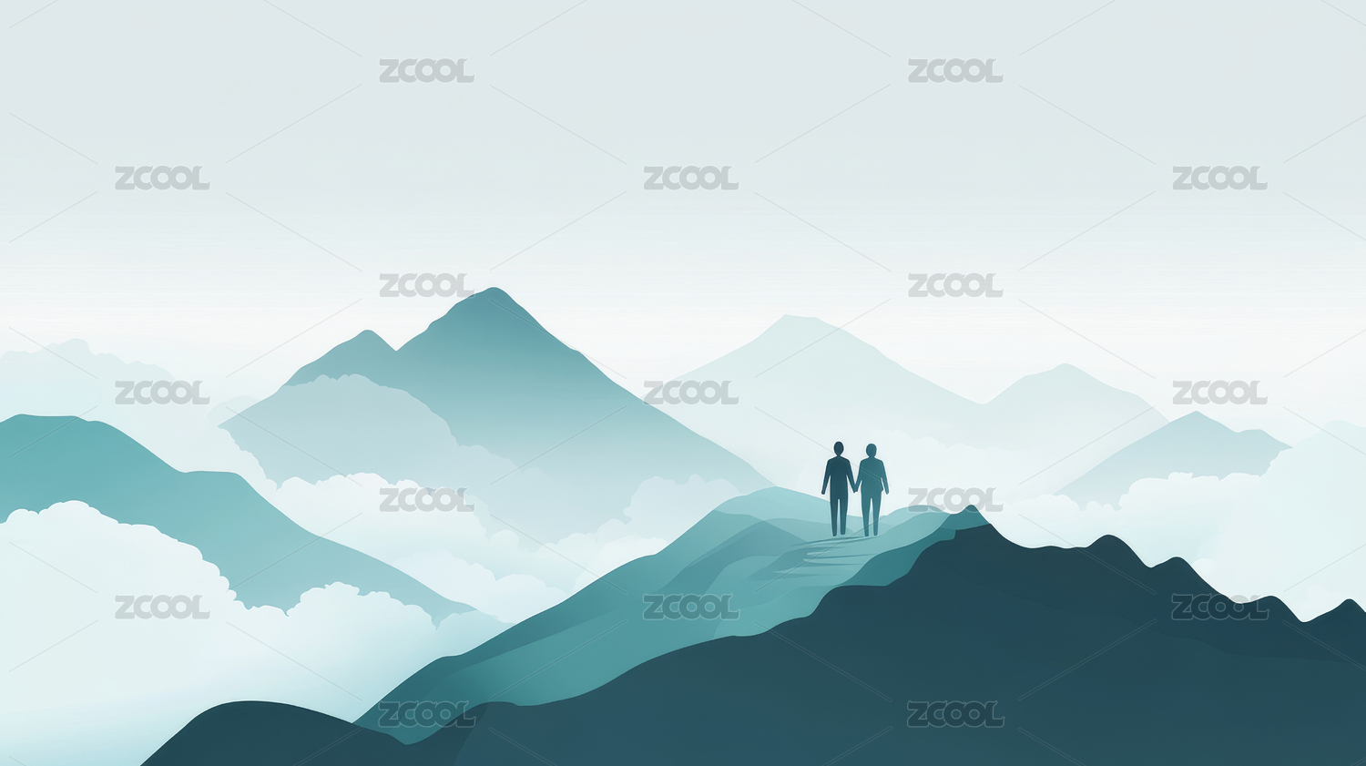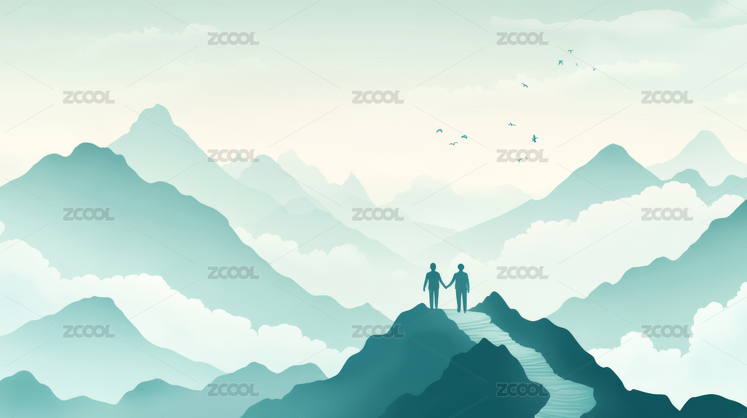 重阳节,风景,老人,山坡,太阳,温馨,插画,陪伴,夫妇,幸福