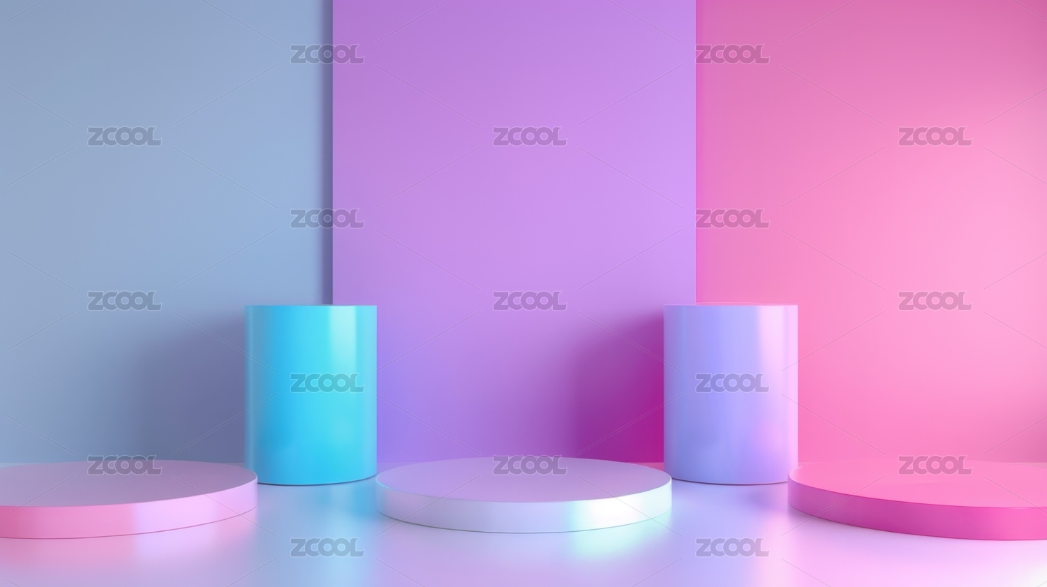 梦幻粉蓝渐变色展台底座电商3D效果图