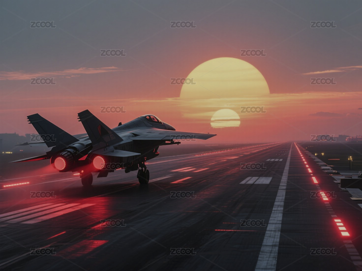 充满未来科技感的科幻航天飞机在跑道上起飞