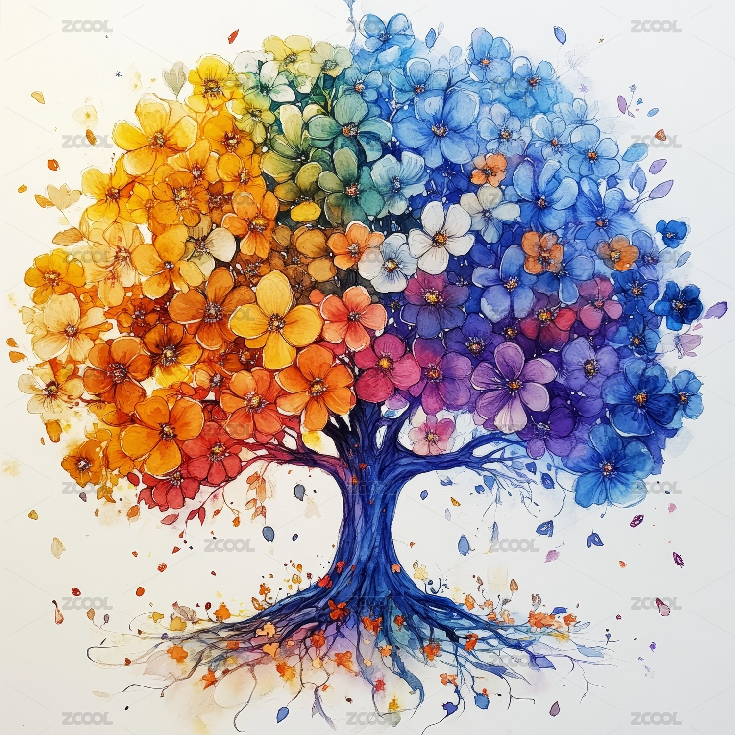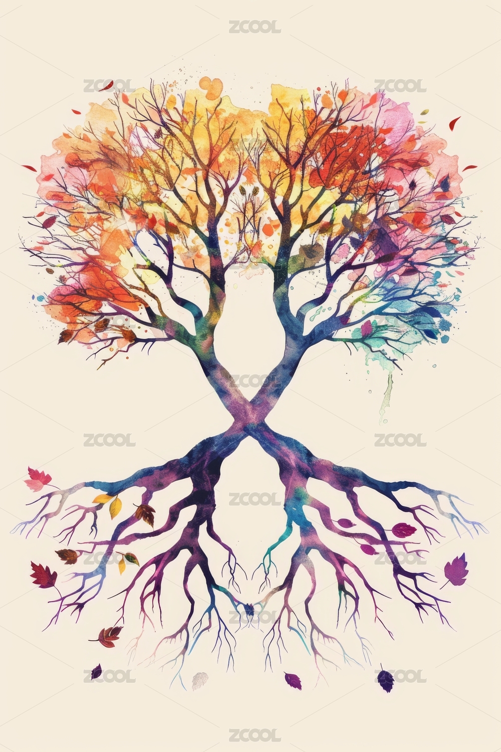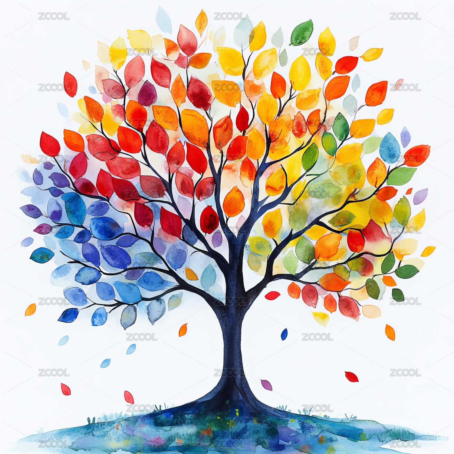 梦幻,艺术,自然,树叶,蓝色,紫色,红色,橙色,黄色,抽象