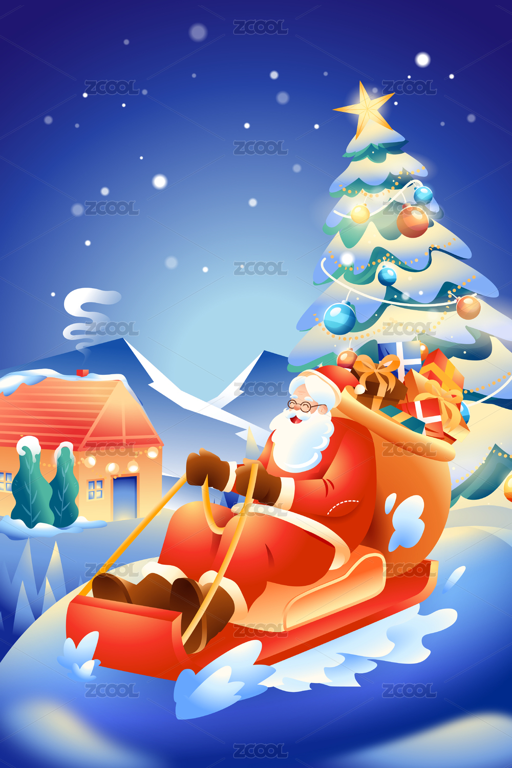 圣诞节圣诞老人平安夜送礼物冬天节日插画