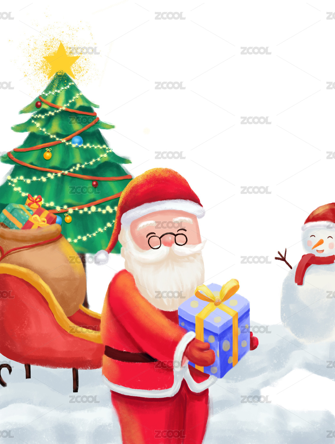 圣诞节插画圣诞老人雪人麋鹿礼物