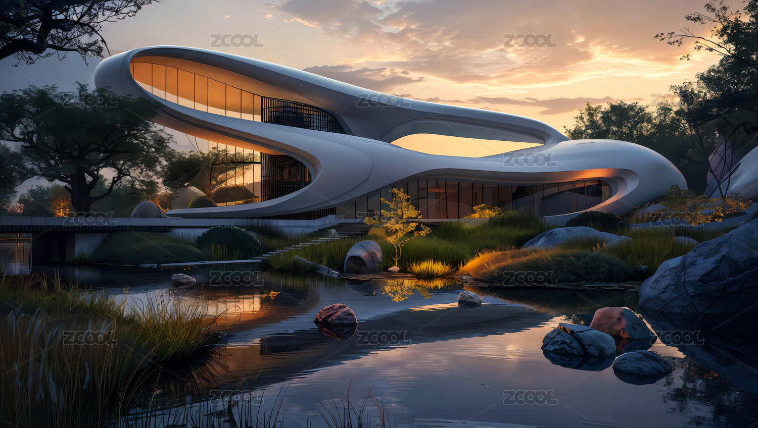 现代,建筑,别墅,海景,未来,抽象,外景,简约,素材
