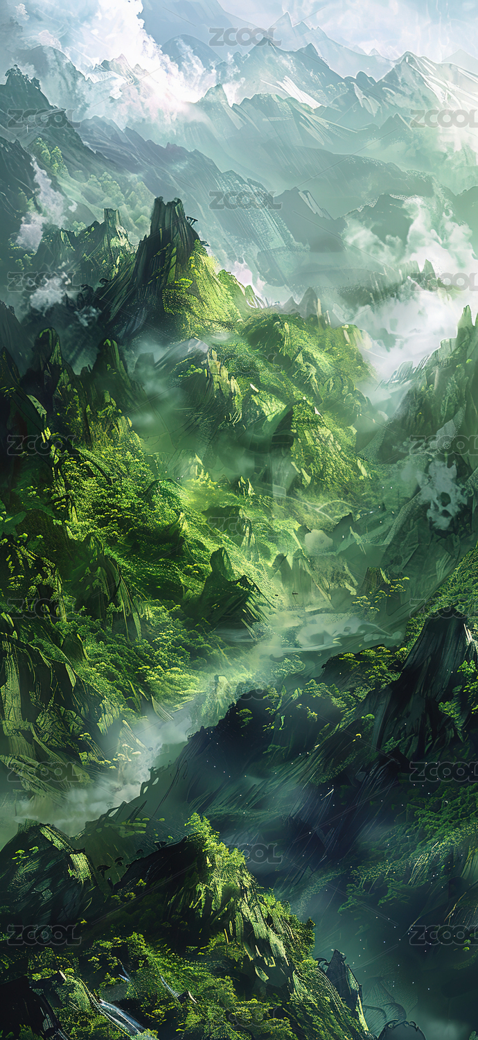 山谷云雾缭绕仙境图