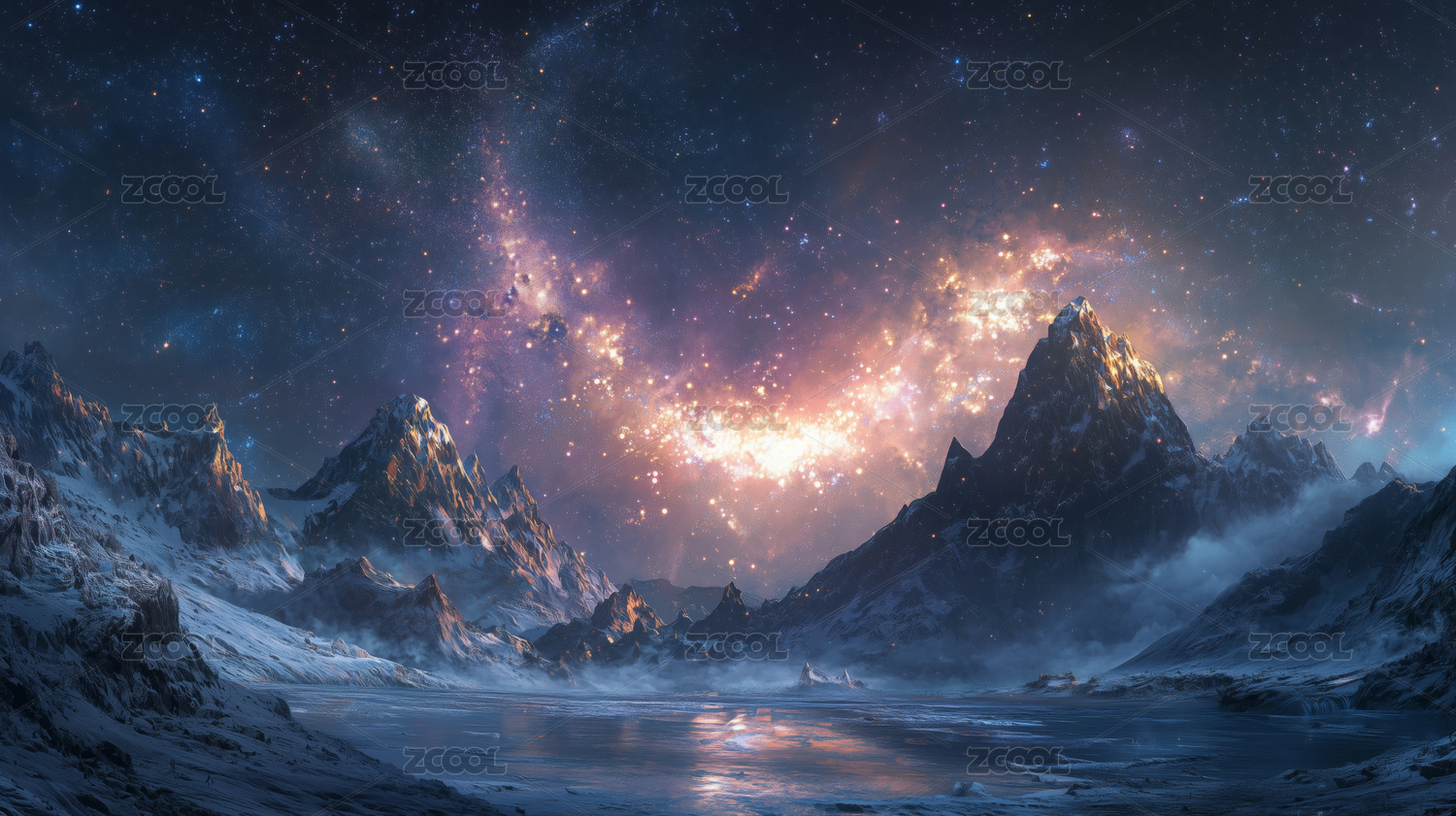 星空下的雪山和