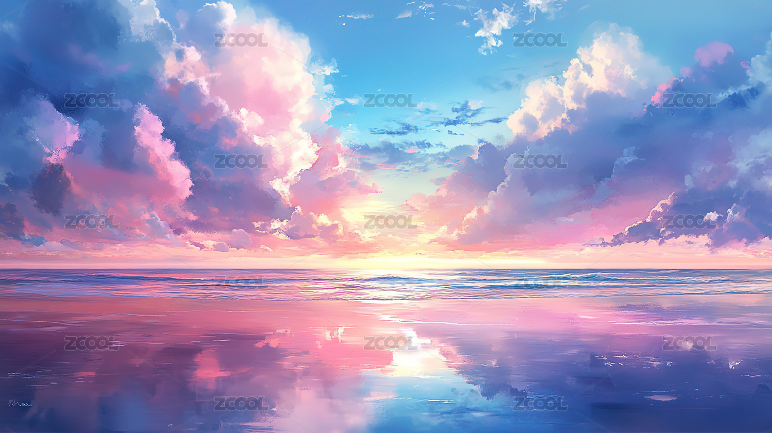 夏日海滩海浪插画,大暑节气海边度假概念插