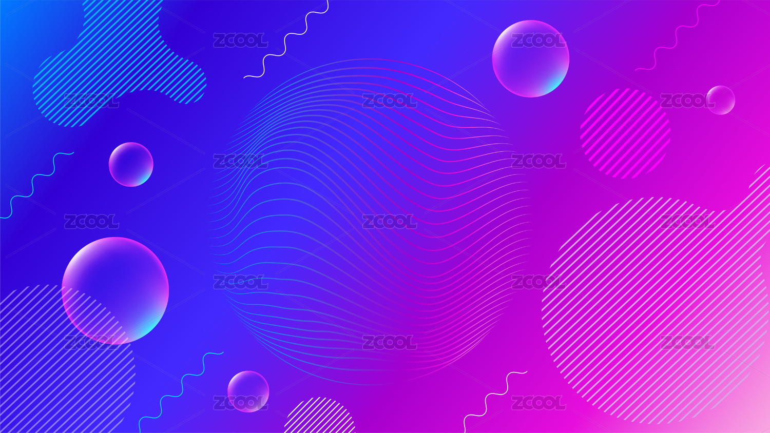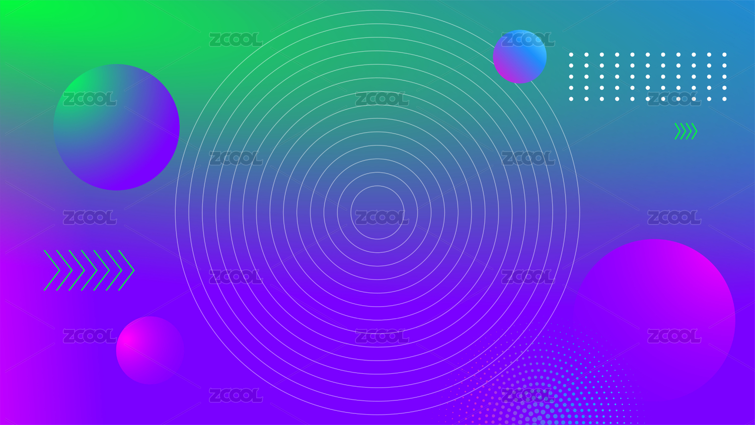 同心圆和多彩球形组合 蓝色抽象风格背景