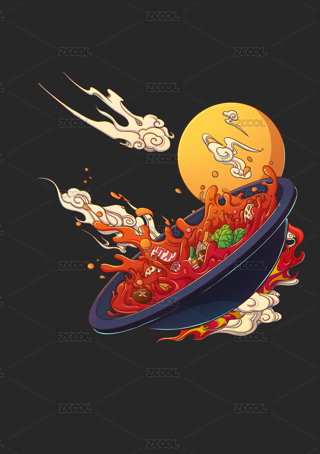商业插画,螺蛳粉,包装插画,爆辣,红色,海报设计,活动,可爱