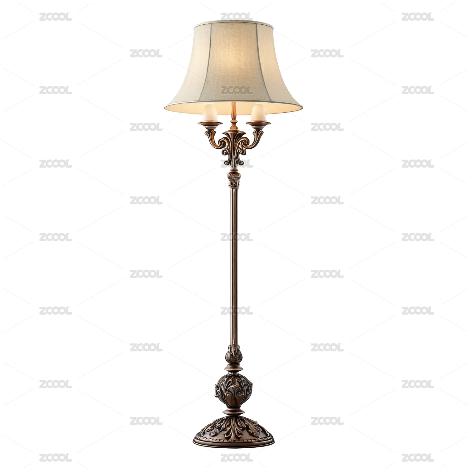 复古风格落地灯带装饰金属底座和布艺灯罩