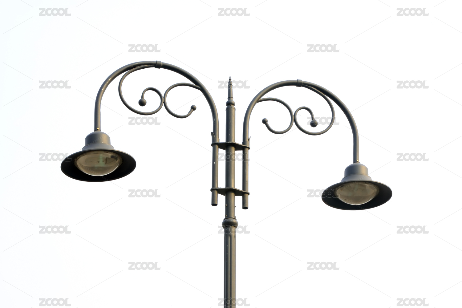 复古风格金属街道标识牌带华丽卷草纹和灯