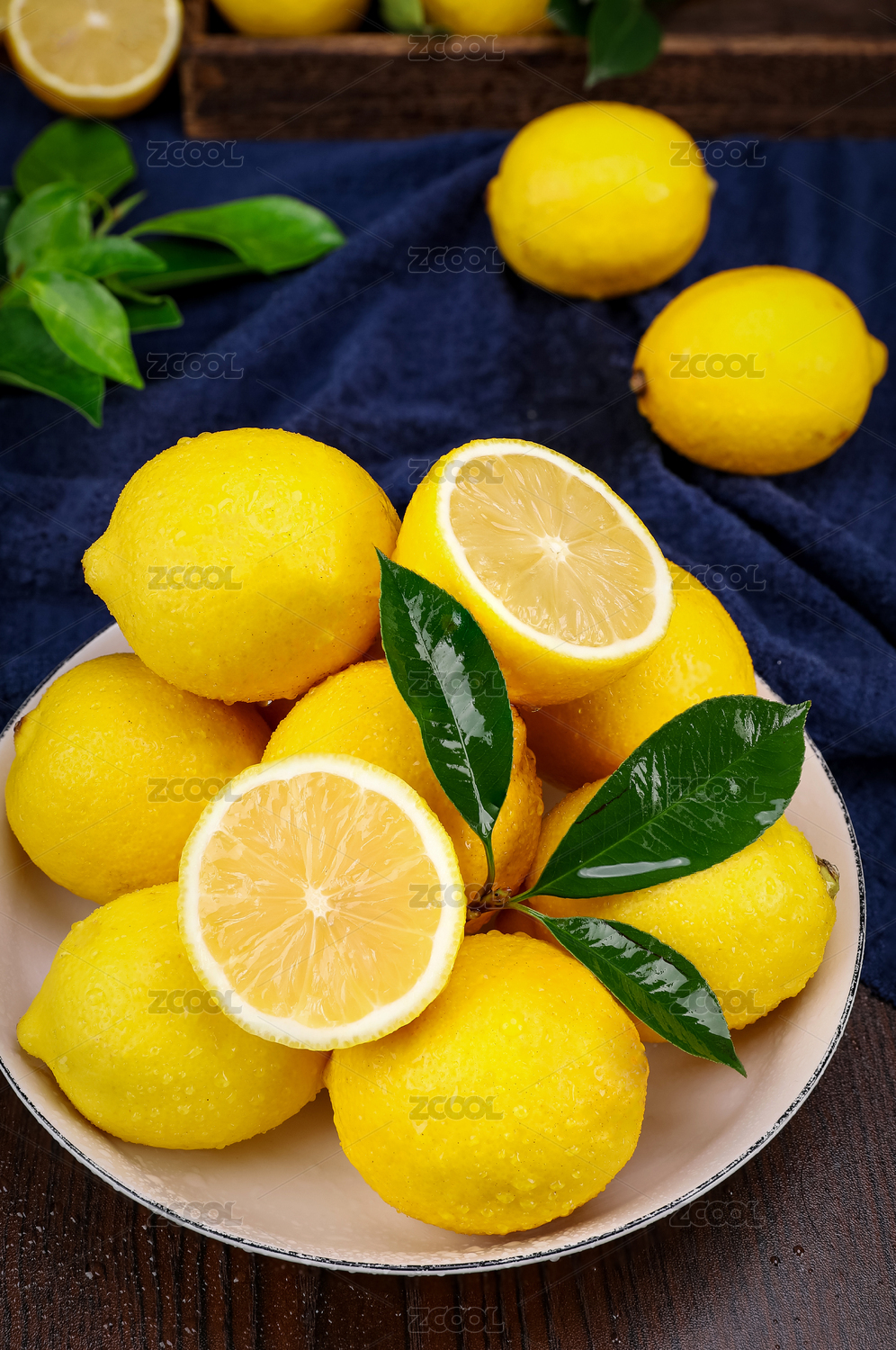 木垫上放着一盘新鲜海南黄柠檬